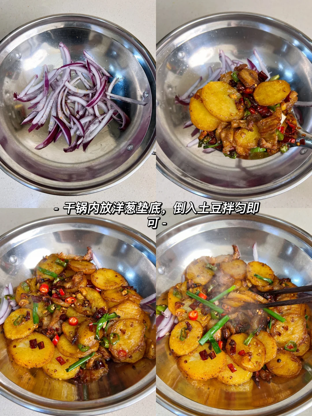 ⭕️PS:有干锅炉的话还可以铺点洋葱转入小锅内,边吃边煮,味道更香啦,没有的话也可起锅前倒点洋葱炒匀即可;