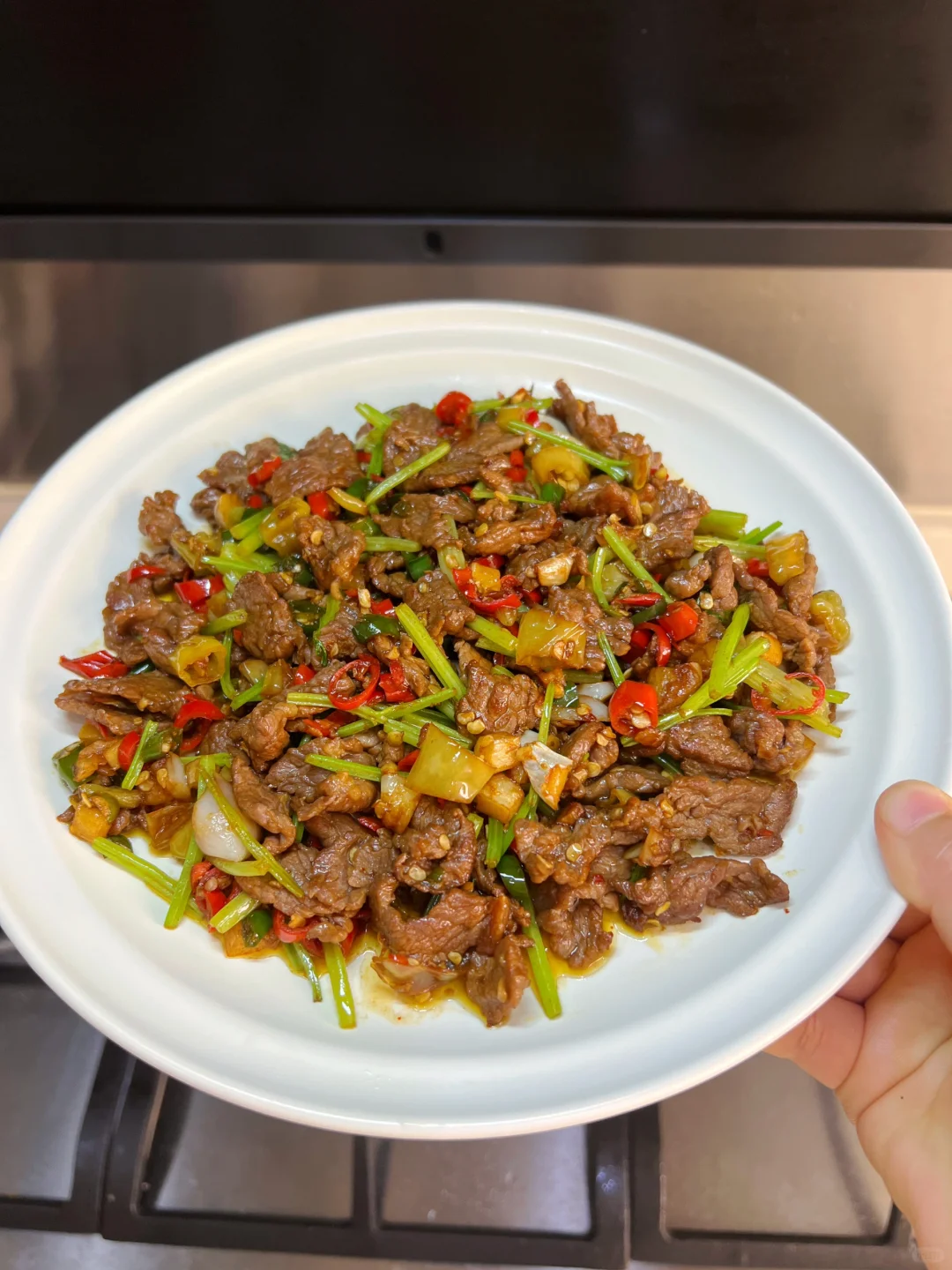 江西人做的小炒黄牛肉,有点儿好吃,香辣下饭