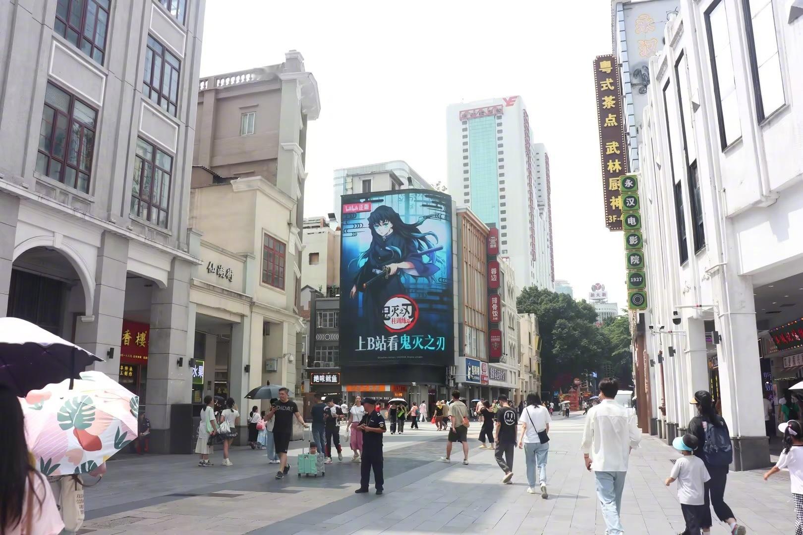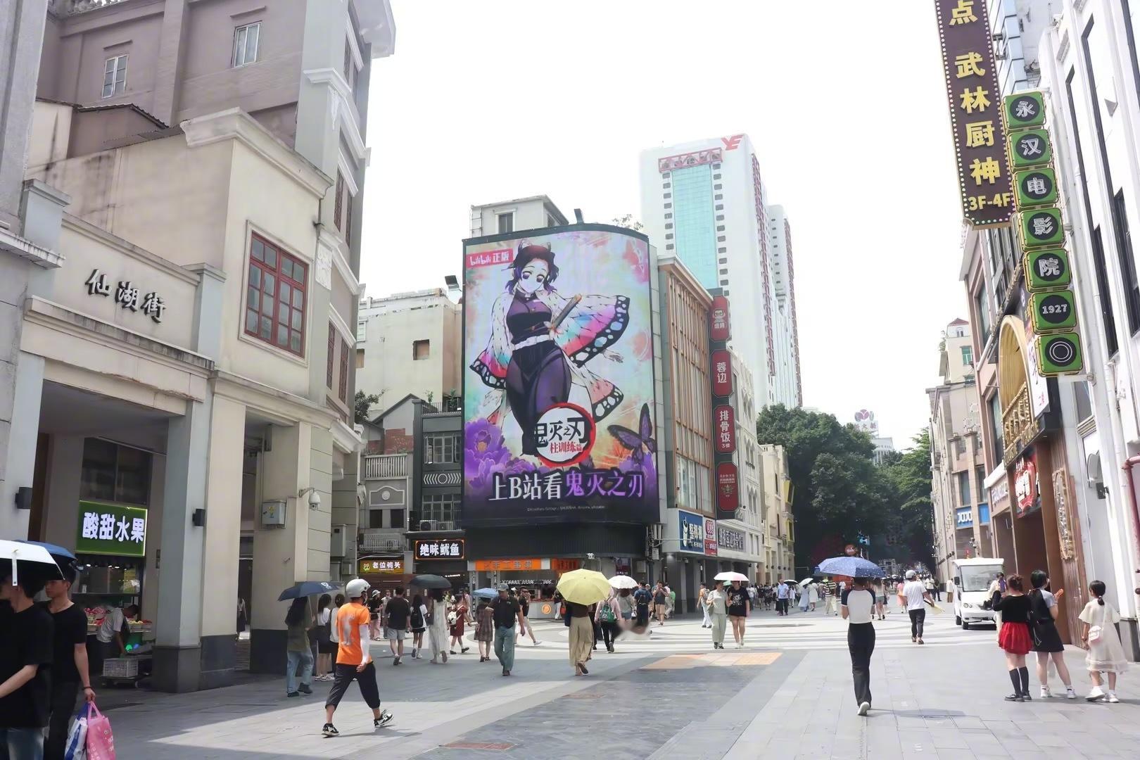 #鬼灭之刃柱训练篇开播# 惊!居然在广州看到真的柱集合了!阿B这个线下大屏好帅,鬼灭粉这不狂喜,今晚20:00小破站我必冲!