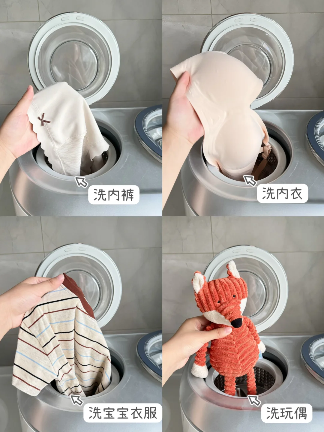 除了内衣裤、袜子,各种小件娃的小衣服、口水巾、玩偶,毛巾都直接丢进去洗,洗自己的内衣裤,还有宝宝的小衣服再也不用搓搓搓了,真的是懒人神器!还在观望的姐妹们可以放心大胆冲了!