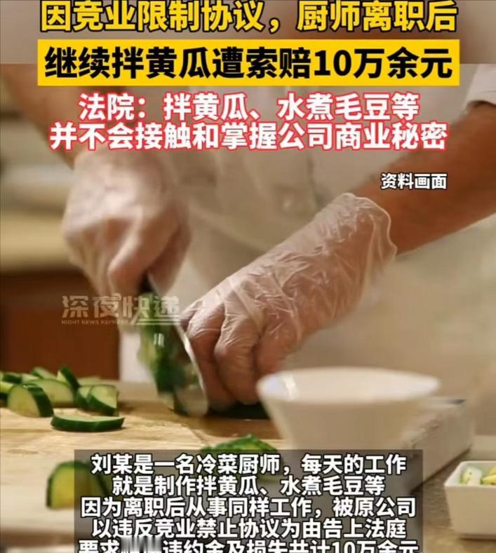 “恶意索赔?”南京,一名调黄瓜的凉菜师傅从餐馆离职后,又到别的饭店就职,谁料,原东家竟以“泄露商业机密”为由向他索赔10万元!然而,法院的判决大快人心。 【来源:西安晚报 拌黄瓜的厨师,被诉违反“竞业限制”,遭索赔10万!法院判了 2024-06-22 09:00】 在一个普通的清晨,刘凯(化)的生活被彻底颠覆。 当他打开门,看到法院的传票时,他的内心充满了震惊。 他无法相信,自己曾经就职的餐饮公司竟然会将他告上法庭,还称要支付1万元的违约金,并赔偿造成的损失9.1万余元。 这一切的源头,都要追溯到他与公司签订的一份《保密及竞业禁止协议》。 刘凯在之前入职的那家家餐饮公司工作了很长时间,作为一名冷菜厨师,他凭借自己的手艺赢得了顾客的好评。 然而,由于某些原因,他选择了离开这家餐厅。 随后离职后,他加入了另外两家酒店,继续从事他的冷菜厨师工作。 然而,他的前雇主现在却认为,他违反了竞业协议,从事与公司业务竞争的工作,并可能泄露商业秘密。 面对这样的指控,刘凯感到十分委屈。 他只是一个普通的厨师,从未接触到所谓的商业秘密。 他所掌握的,不过是拌黄瓜、煮毛豆这样的基本技能。 法院开始审理此案,焦点集中在了那份《保密及竞业禁止协议》的有效性上。 协议中规定,刘凯在职期间接触到的所有技术信息、配方、技术诀窍等,只能用于完成工作任务,不得私自泄露或传播。 此外,他还被要求在离职后的两年内,不得从事与公司业务相竞争的工作。 也就是说,就算刘凯离职了,让也不能在用自己的凉拌黄瓜的技术去给其他餐厅带来盈利。 然而,法院发现,尽管有这样的协议,但公司在刘凯离职后并未向他支付任何竞业补偿。 这个案子很快引起了公众的关注,特别是在网上,引发了广泛的讨论。 如果连凉拌黄瓜这种最基本的厨艺都能被视为商业秘密,那么还有多少普通技能会被公司以保护知识产权的名义垄断? 最终,法院作出了判决:驳回餐饮公司的诉讼请求。 这个判决对刘凯来说是一个巨大的解脱,他终于摆脱了困境,可以继续自己的职业生涯。 刘凯的案子引发了一系列的思考:在快速变化的社会中,我们该如何界定商业秘密? 普通的工作技能是否应该受到保护?这个案子可能会促使劳动法规进一步完善,以更好地保护劳动者的权益。 而对于刘凯来说,他只是希望继续用自己的手艺来养活自己,这个简单的愿望,现在终于得以实现了。#社会#
