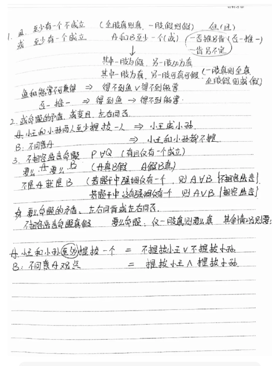 至多 非A或非B 至少 A或B A推B 否命题 A且非B