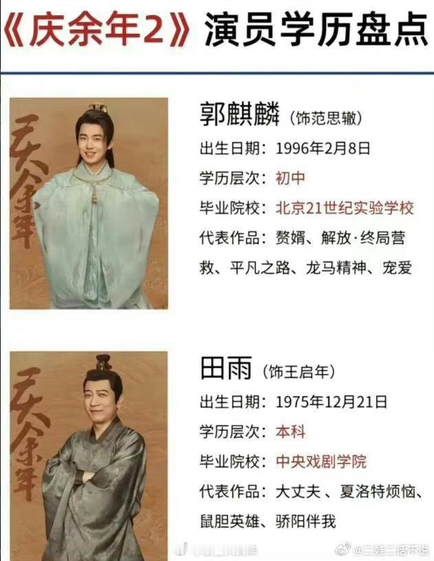 #荣梓杉 等补录# 不上大学也不影响演技,郭麒麟和李沁当时虽然是庆余年里面学历不好的,一个初中一个中专,但不影响多部代表作