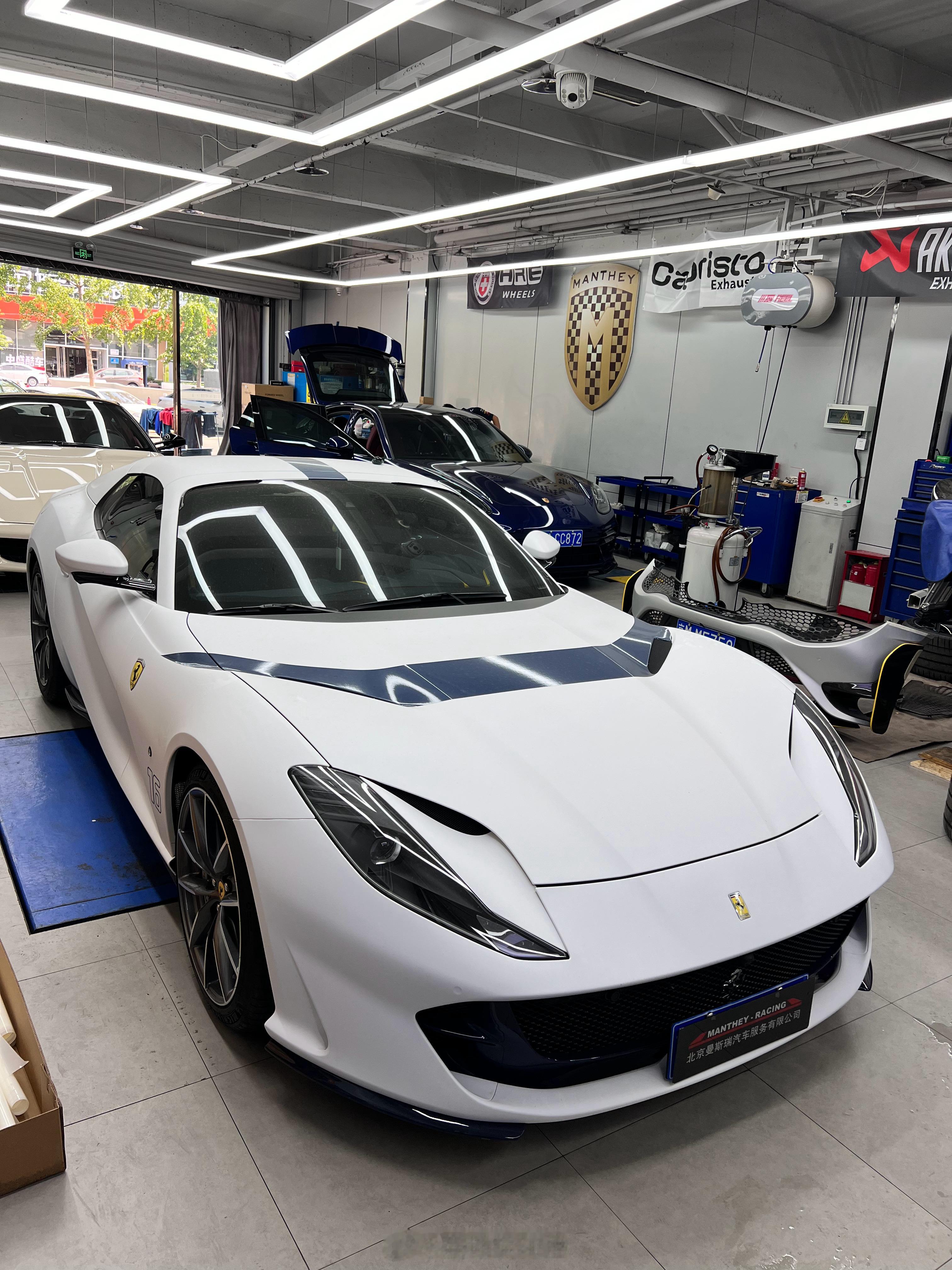 法拉利812GTS贴膜改色哑光白,内饰外观满满的蓝碳[举车]
