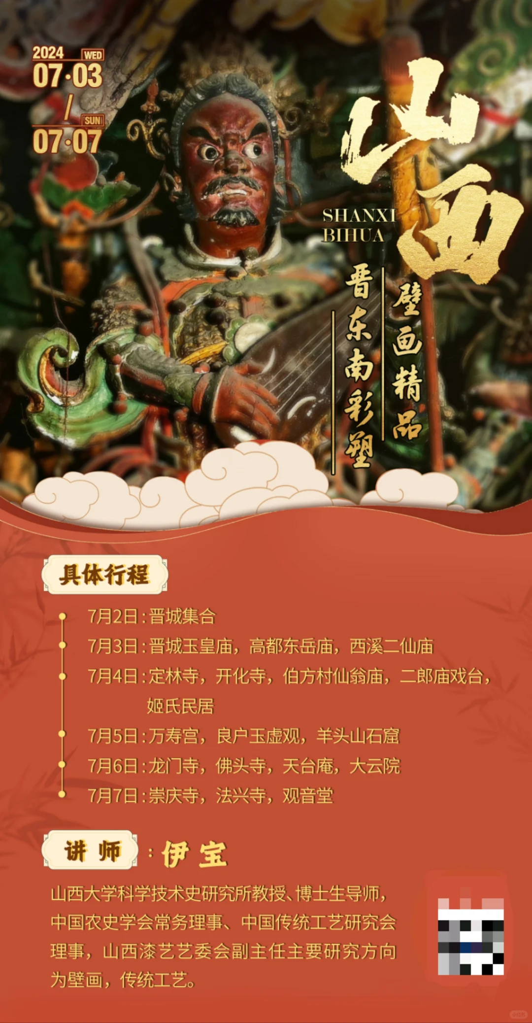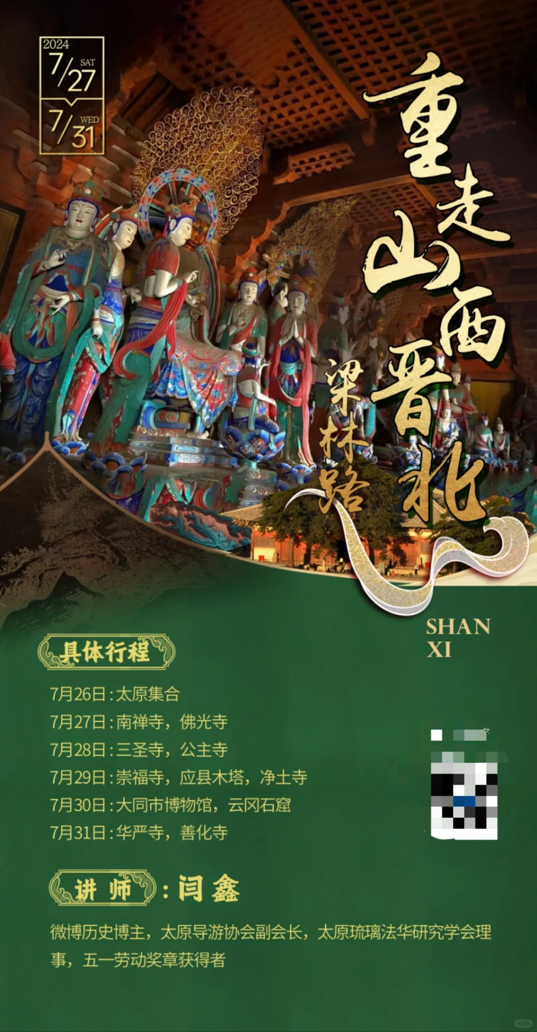 7月我们精心设计了小众但精品荟萃的古建筑、石窟、壁画、彩塑路线,由专业资深老师全程细致讲解,绝非一般导游词走马观花~