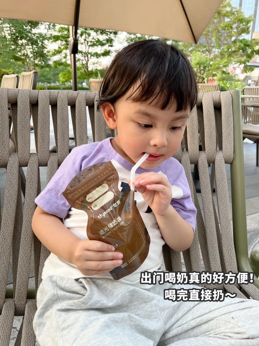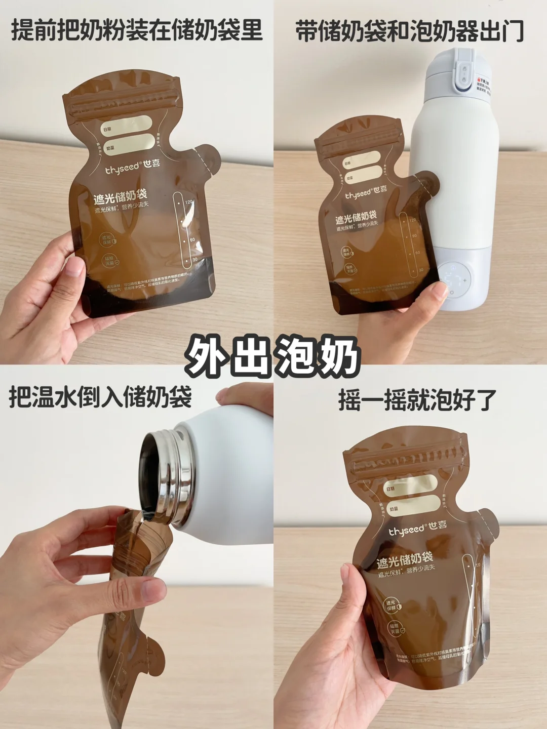 还可以外出泡奶!直接将奶粉倒入储奶袋,加入温水摇一摇就可以喝了,还不用洗奶瓶,真的超方便的!