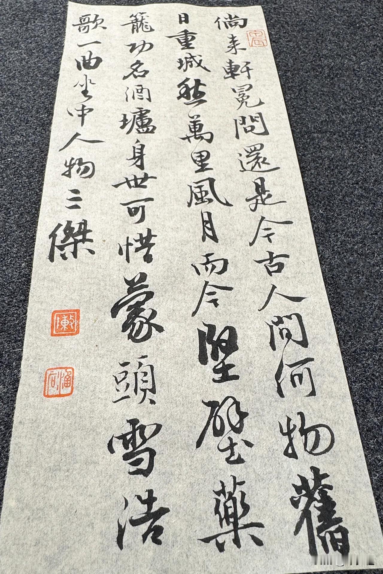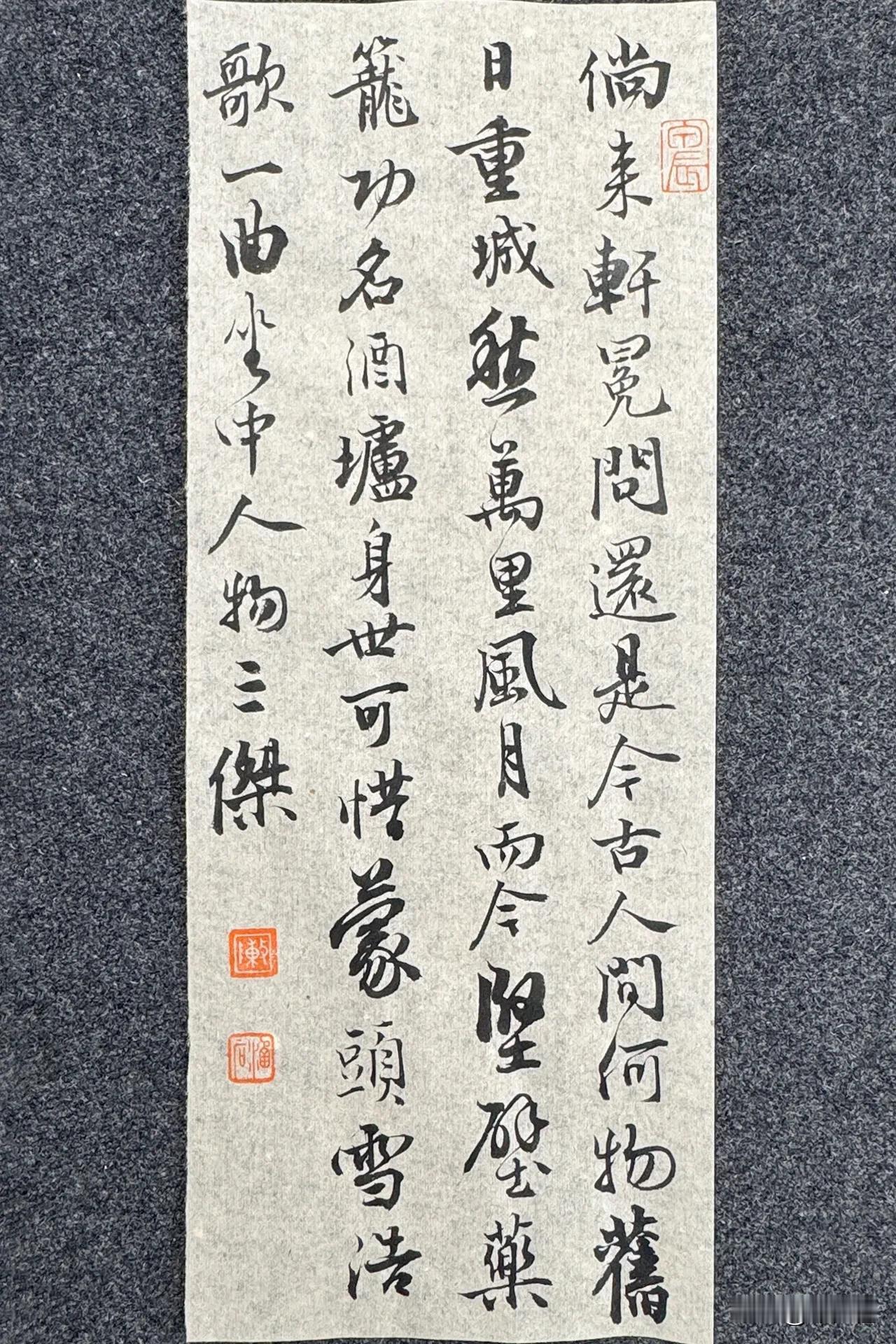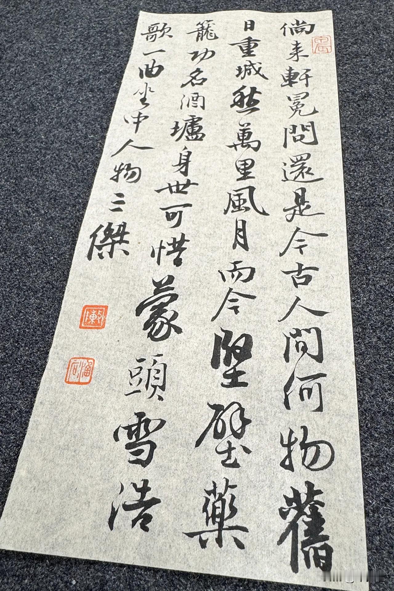 今夕社小行书,辛弃疾《念奴娇·用东坡赤壁韵》上阕,静态版。 倘来轩冕,问还是、今古人间何物?旧日重城愁万里,风月而今坚壁。药笼功名,酒垆身世,可惜蒙头雪。浩歌一曲,坐中人物三杰。 笔:墨社今夕软玉 | 纸:墨社今夕浅仿古毛边纸 | 墨:墨社今夕轻胶中浓墨液 #书法# #行书# #行书毛笔# #毛边纸#