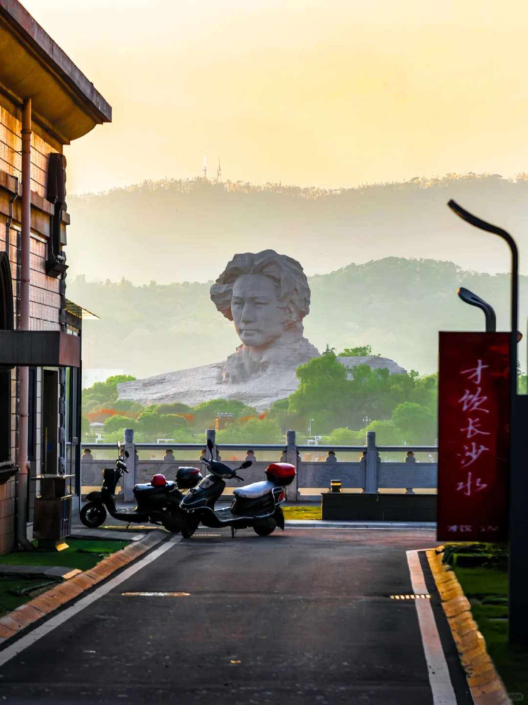 来长沙怎么能不来一张伟人合影呢 如果你不想人挤人,也不想走很多路 那么这个人少景美的机位很适合你 网友真的没骗我,碧沙湖地铁直达 5️⃣号口出门对面,就在自来水厂栅栏 往左一百米的观景平台拍合影氛围感满满 . 📍:四号线碧沙湖地铁站5️⃣号口 . ✅拍照tips: 1.机位位于江对面,距离比较远,需要放大拍摄 2.需要拍伟人雕像近照的还是选择橘子洲吧更适合拍清楚的合照 3.地铁站出站口对面栅栏拍雕像很好看,往左走一百米有观景平台,拍人好看 4.拍照时需要放大,在观景平台时摄影师离人远一些,然后放大,保持雕像和人物比例比较合适,建议横拍,拉低曝光点提高清晰度 5.建议6点附近去拍,日落前是青色的,日落时是橘子色,金色很好看 - 图1️⃣-1️⃣0️⃣长焦相机拍摄 图1️⃣1️⃣-1️⃣2️⃣苹果🍎15pm拍摄 机位1️⃣被栅栏围起来,需要透过栅栏拍 机位2️⃣有铁丝网,但是可以站在支架上 机位3️⃣是观景平台,可以拍人照,没有遮挡 距离依次是从机位一往前走到机位三 ㊗️:我也是偶然打卡这个机位,更适合相机档和画质高的手机去打卡,不然还是老老实实去橘子洲哦