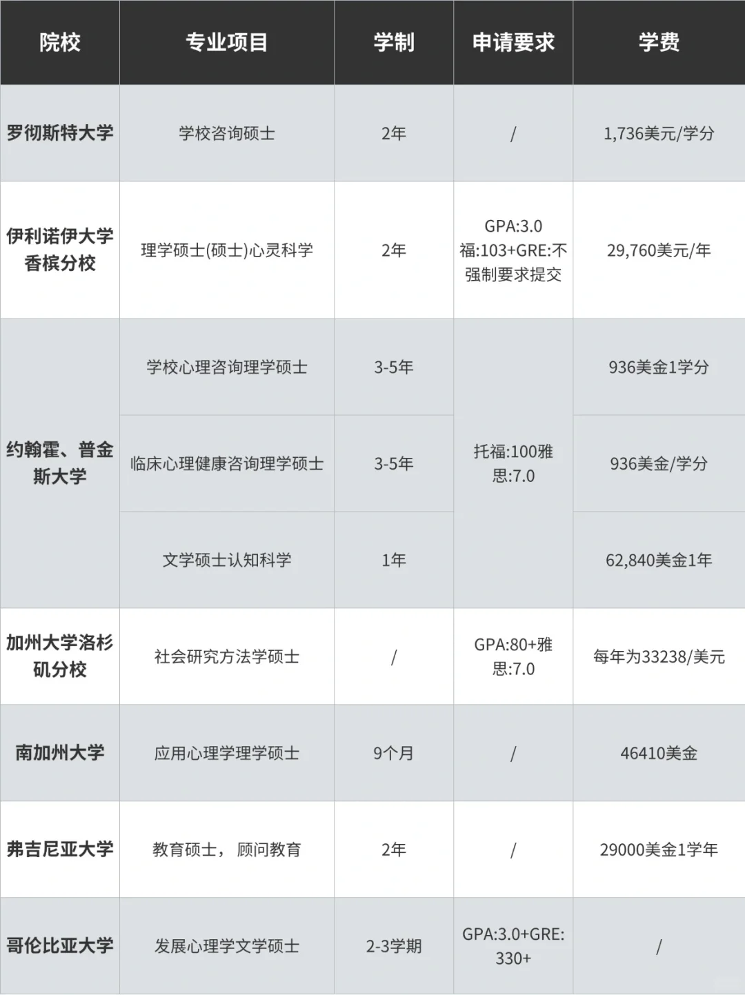 🏫公立大学:加州大学洛杉矶分校、南加州大学、弗吉尼亚大学、伊利诺伊大学香槟分校。