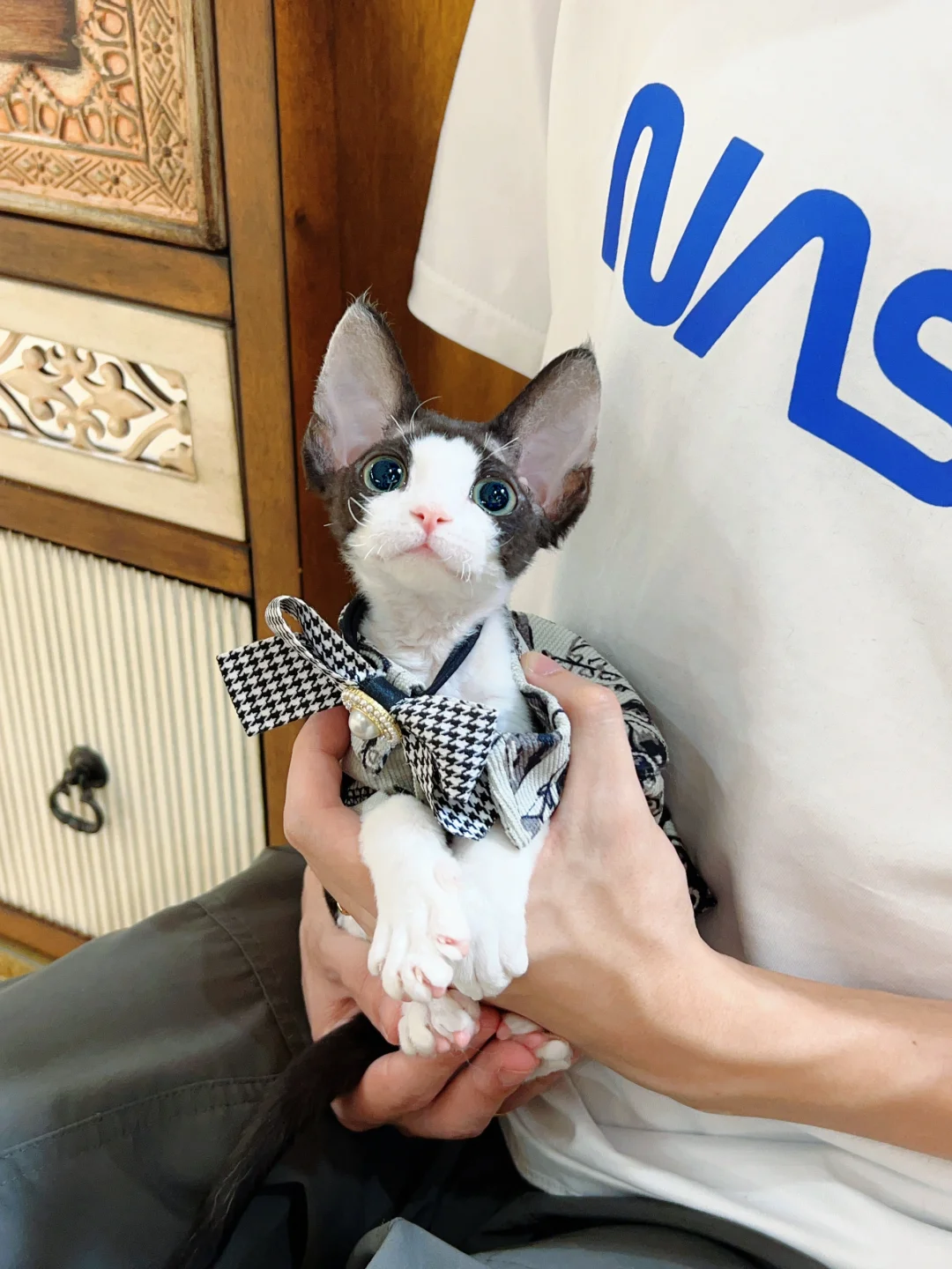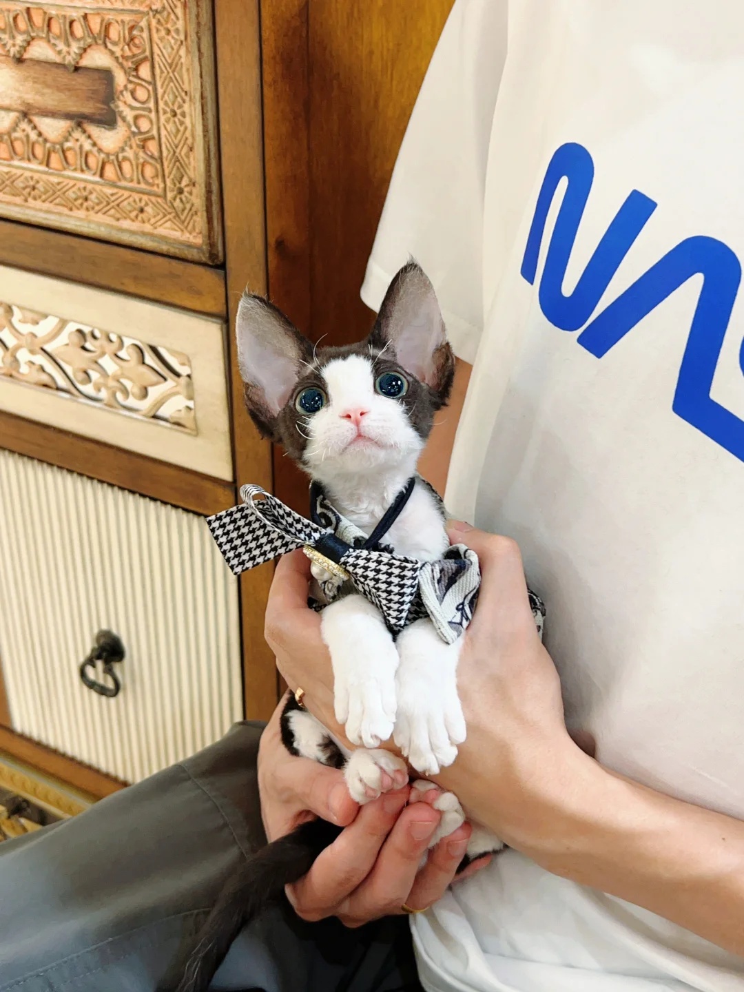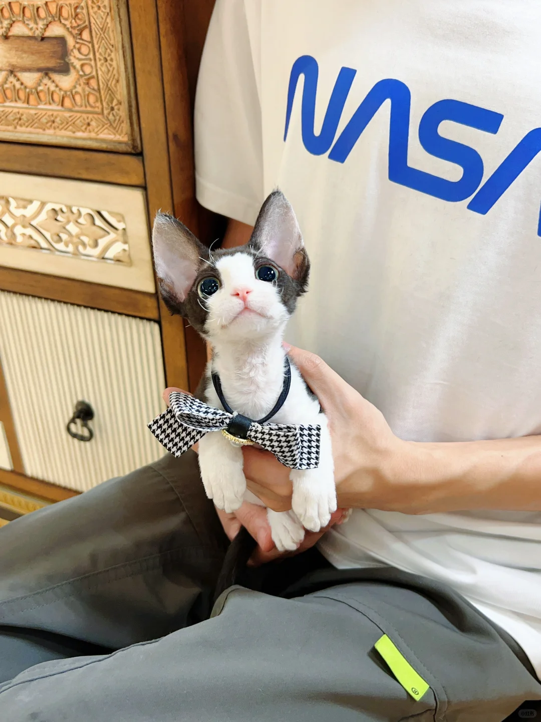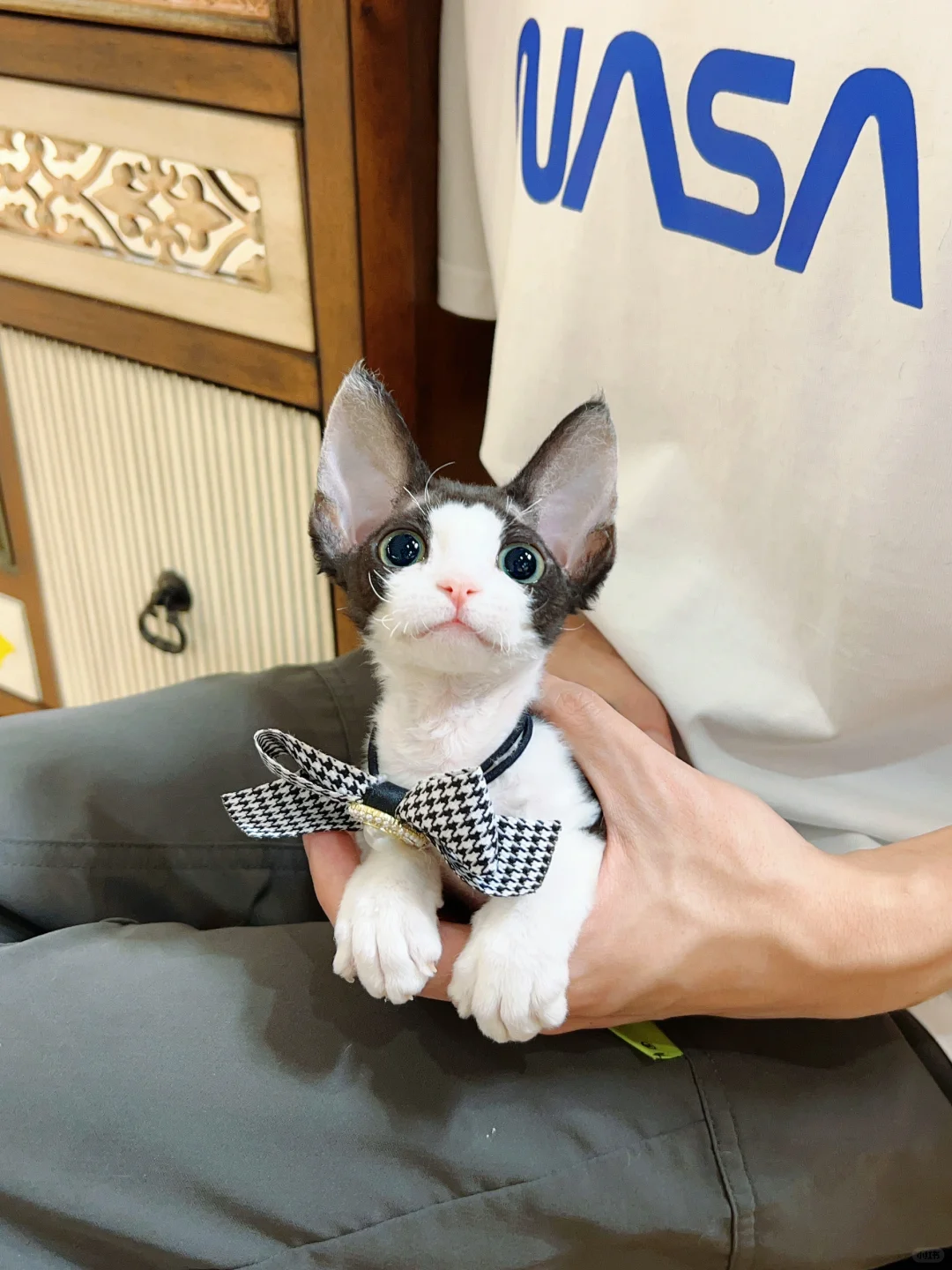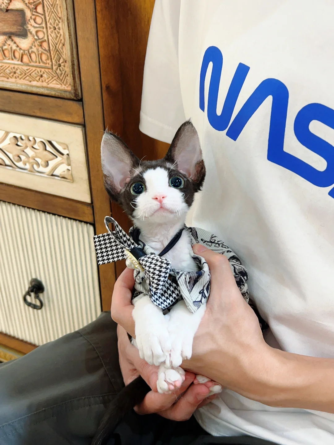 黑白开脸德文卷毛猫 完美开脸 优秀的五官和粘人的性格 杭州德文猫舍,全国可飞!北京,上海,广州,深圳,武汉,成都,厦门,江浙沪,香港等地都可当天到达!