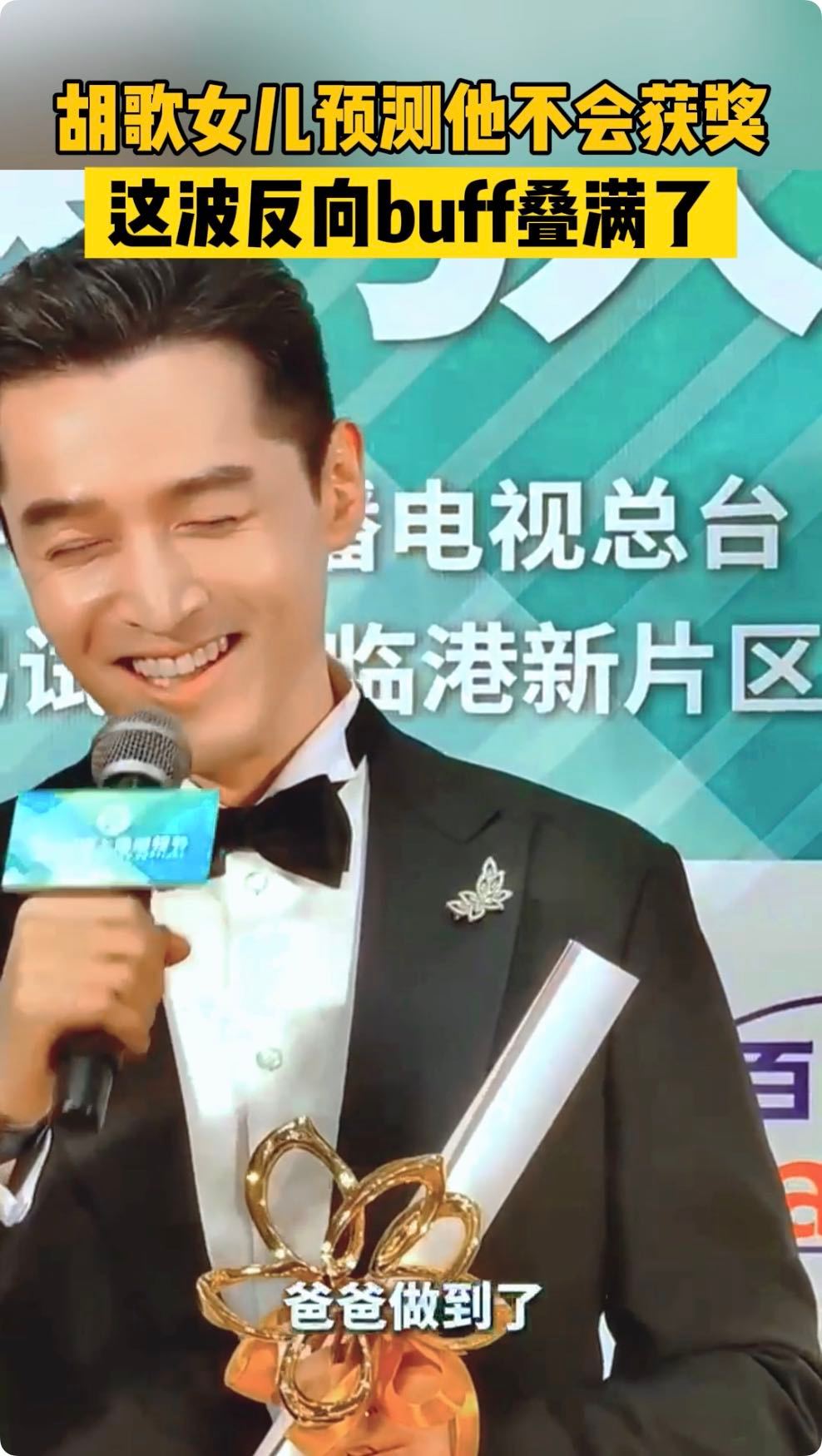 #胡歌女儿反向预测##胡歌女儿预测爸爸不会获奖# 安利完自己的最新综艺斯文江南 后,被问及看着手中的奖杯有什么心里话要说,老胡甜蜜分享与女儿的趣事,表示女儿预测自己不会得奖,胡歌这次真的做到了!#胡歌[超话]#