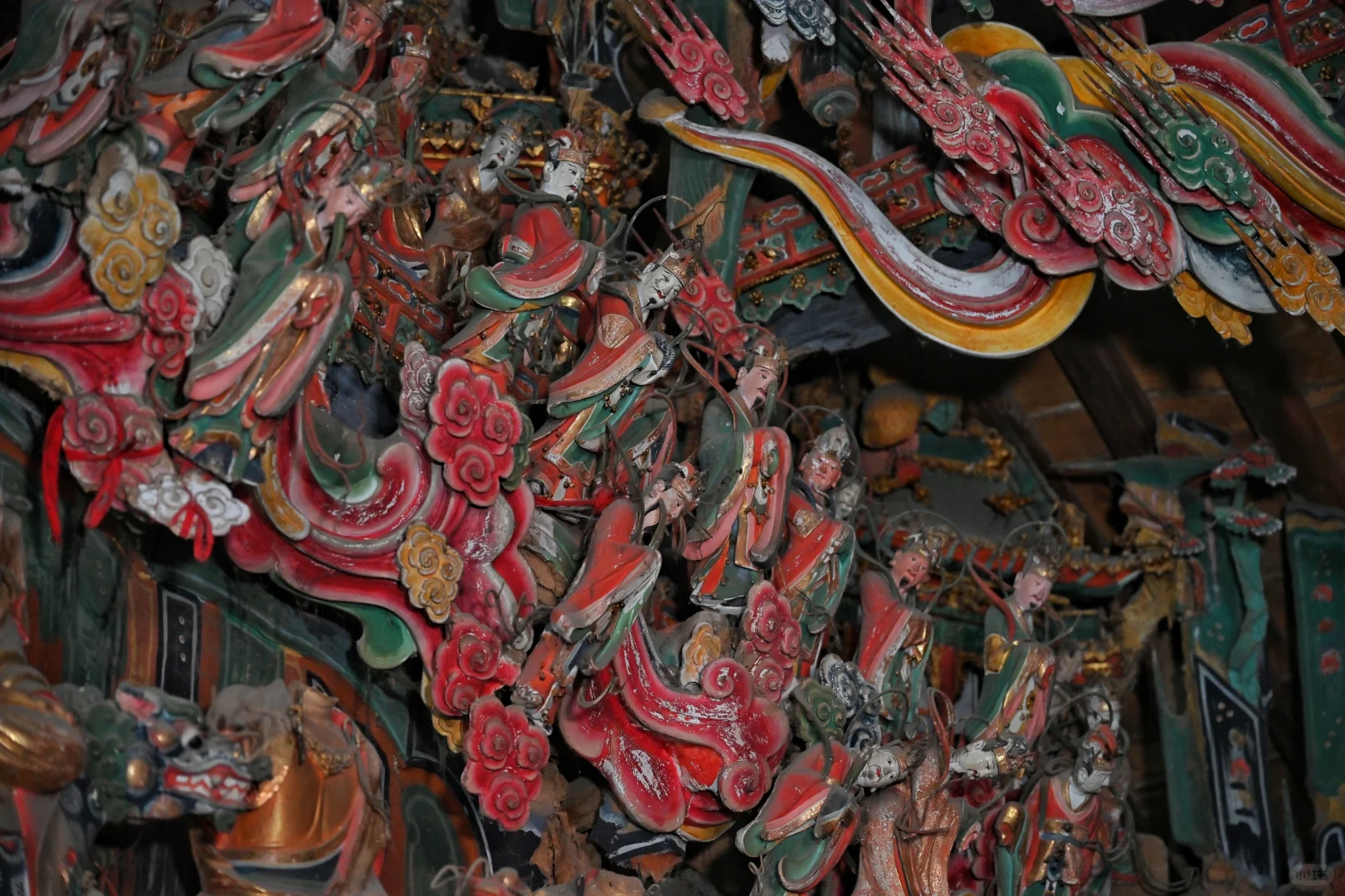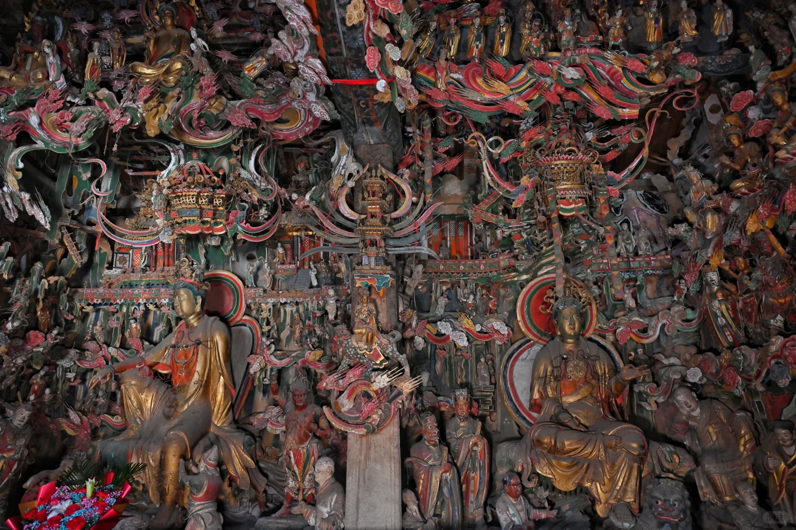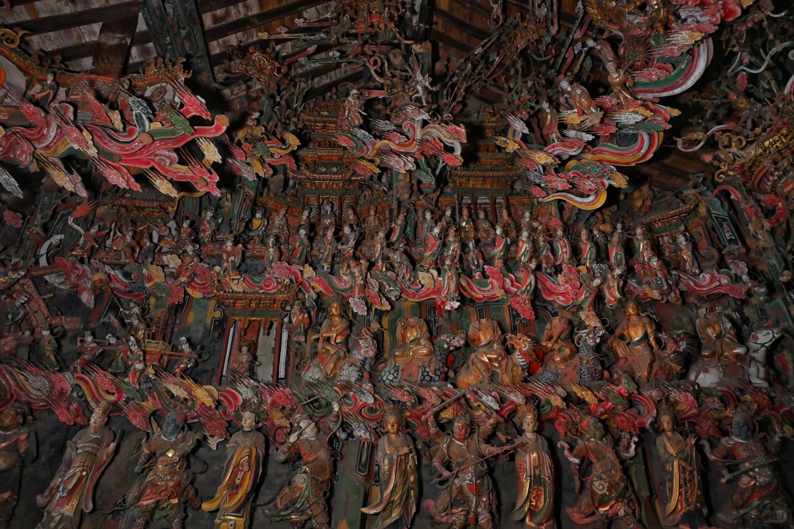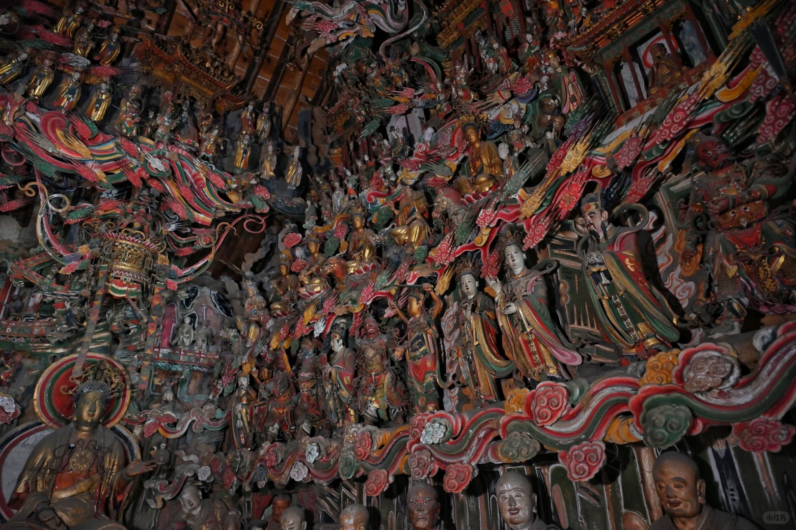 非节假日不限时+放开拍照+可以打冷光灯,这还是我之前去过的长治观音堂吗?借助打光,第一次看清楚整个殿里的细节,也第一次拍到高清照片。 希望更多的文物能够得到科学的保护和利用 山西四大明代悬塑之一,就是这样一座小三间的殿堂,里面仅现存的儒释道三教的大小塑像就有500尊之多,挂满了三面的墙壁。