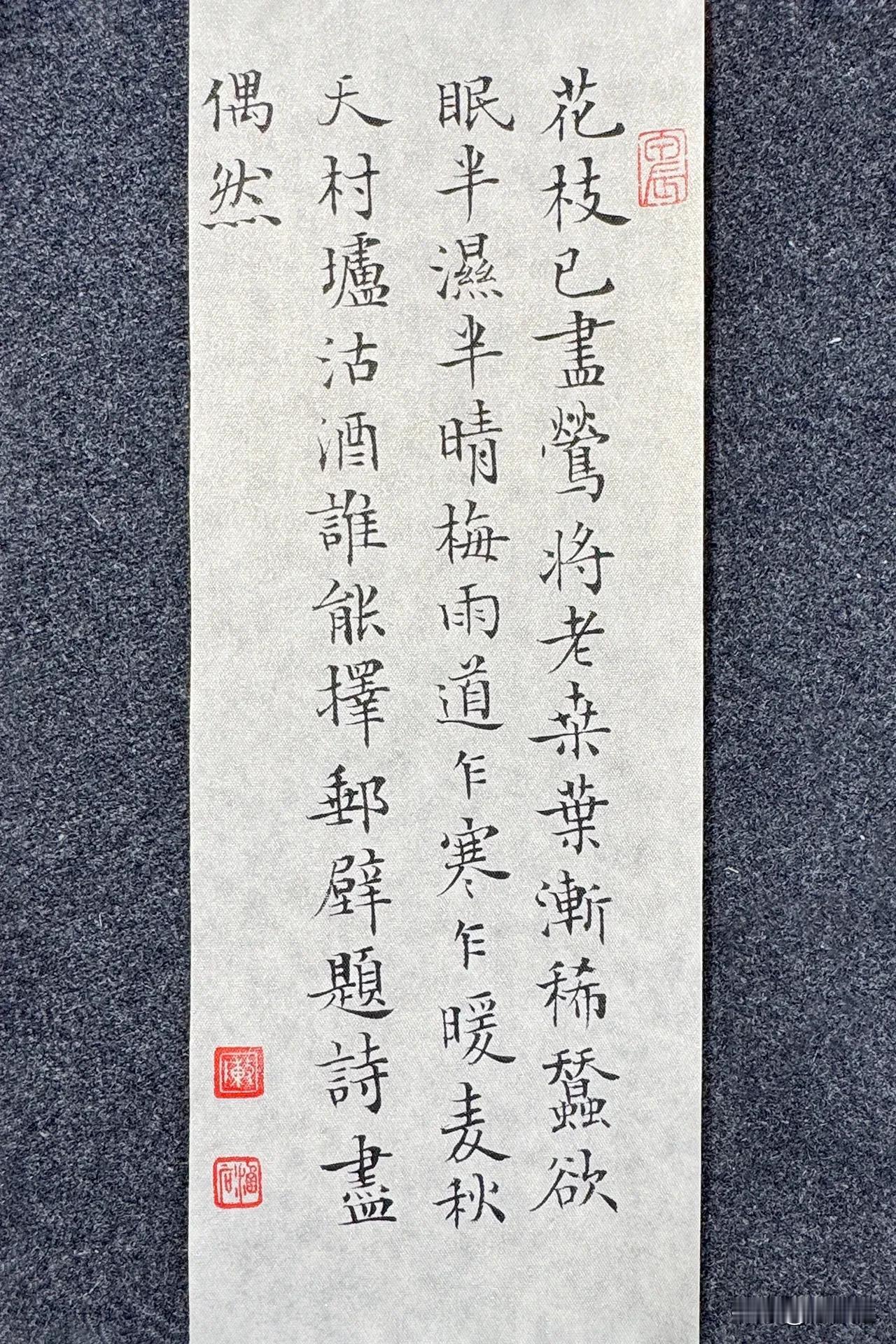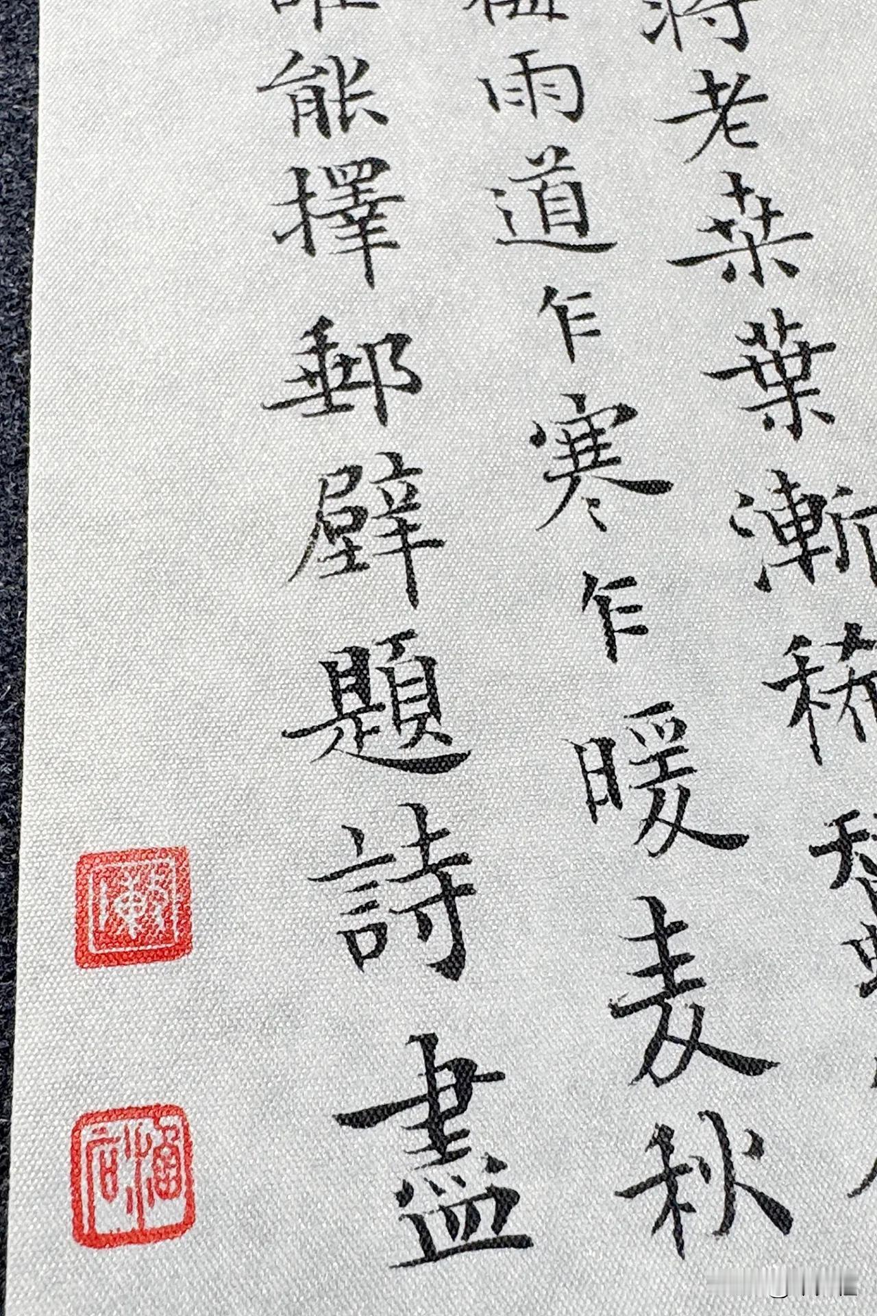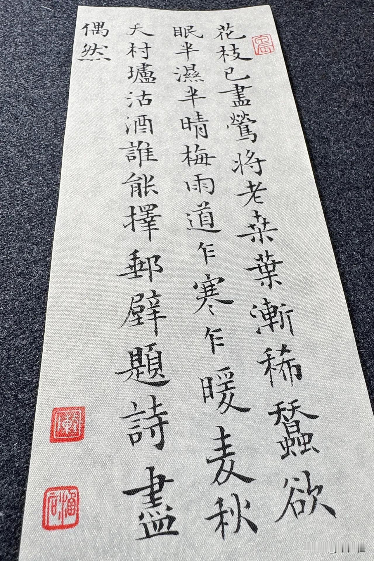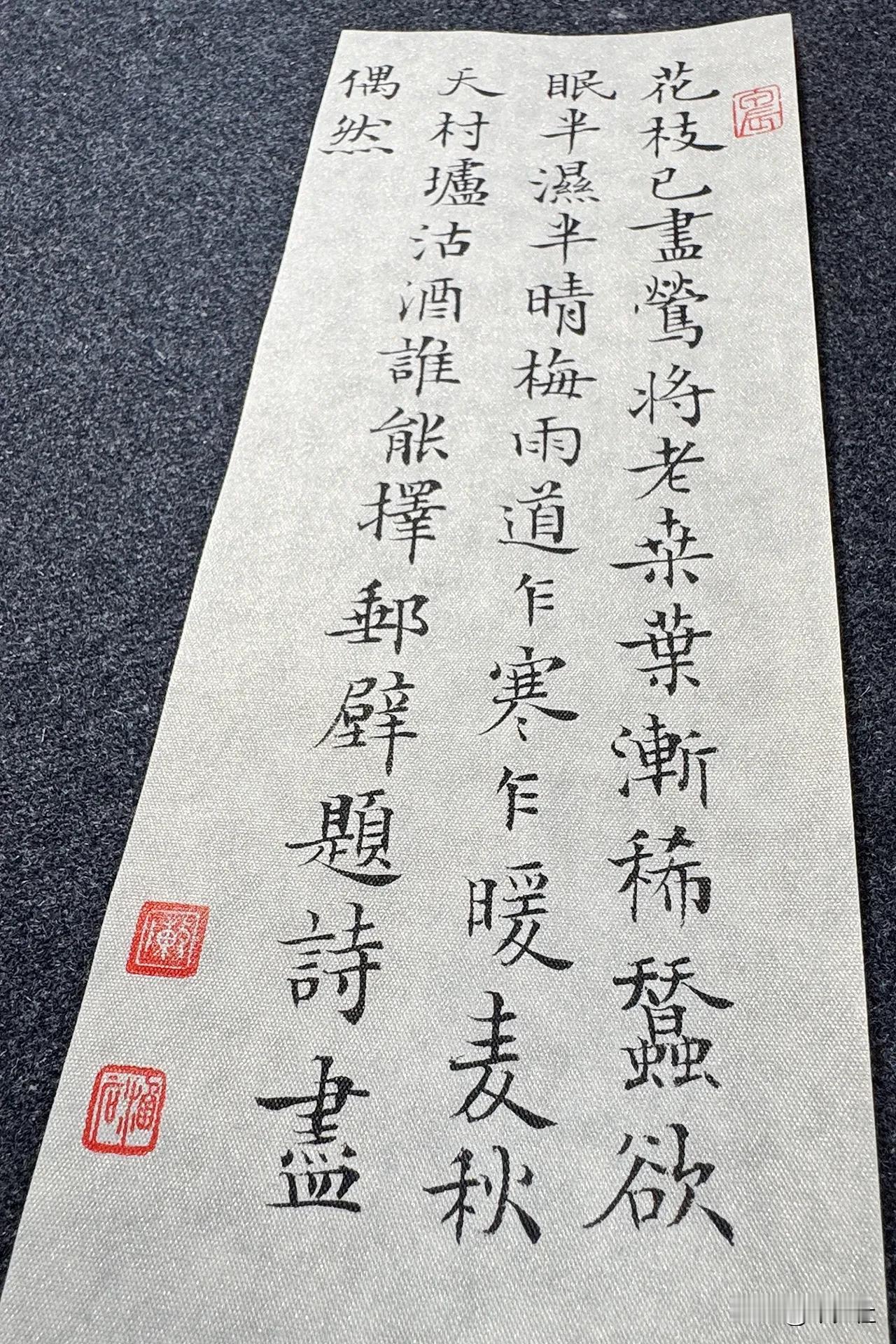 今夕社小楷,黄公度《道间即事》静态版。 花枝已尽莺将老,桑叶渐稀蚕欲眠。 半湿半晴梅雨道,乍寒乍暖麦秋天。 村垆沽酒谁能择,邮壁题诗尽偶然。 笔:墨社今夕软玉 | 纸:墨社今夕白金绢纸 | 墨:墨社今夕轻胶中浓墨液 #书法# #小楷# #小楷毛笔# #白金绢纸#