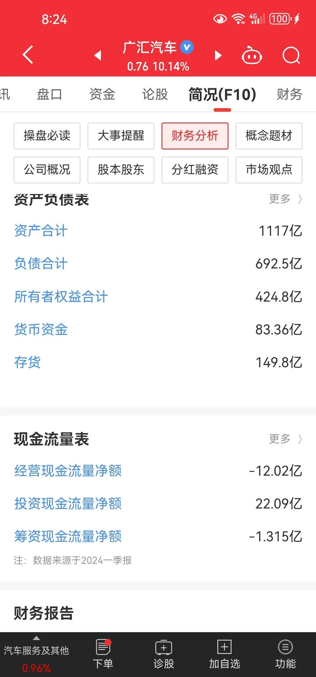 每股0.76元,全款拿下广汇汽车也就才63亿,要是用支付宝花呗借呗还能下月再还控股权50%就够了[狗头]广汇汽车净资产4.7,能很快变现的货币资金与存货也分别为83亿与149亿。咱小散联合联合就把它收购了吧。收购次月就开股东大会稍微卖卖派现120亿先把本和100%收益给你们分分[抠鼻]不过听说很多地方有时候就算拿到控制权的股份也未必能控制人家公司,也不知道是不是真的[抠鼻]