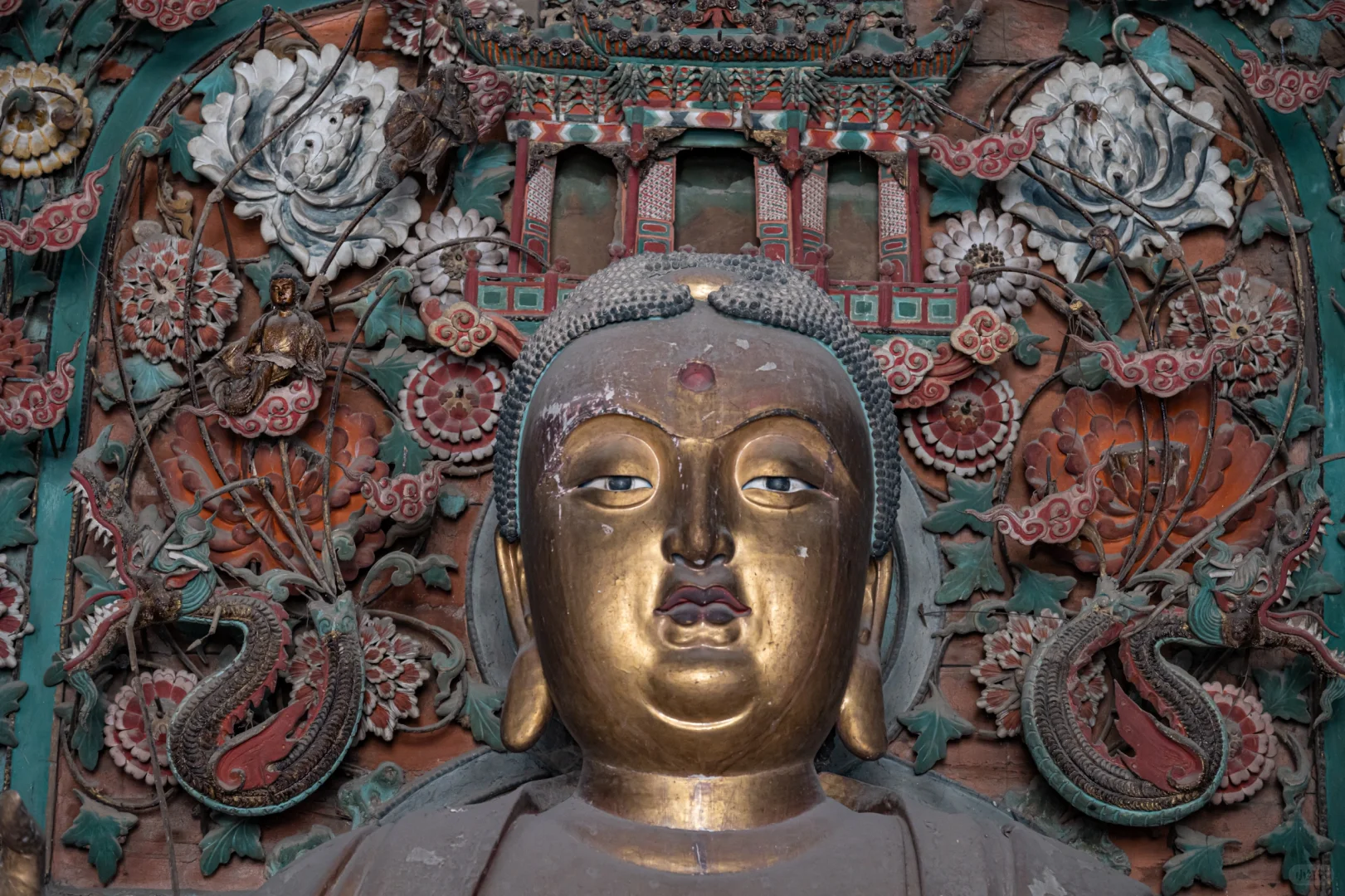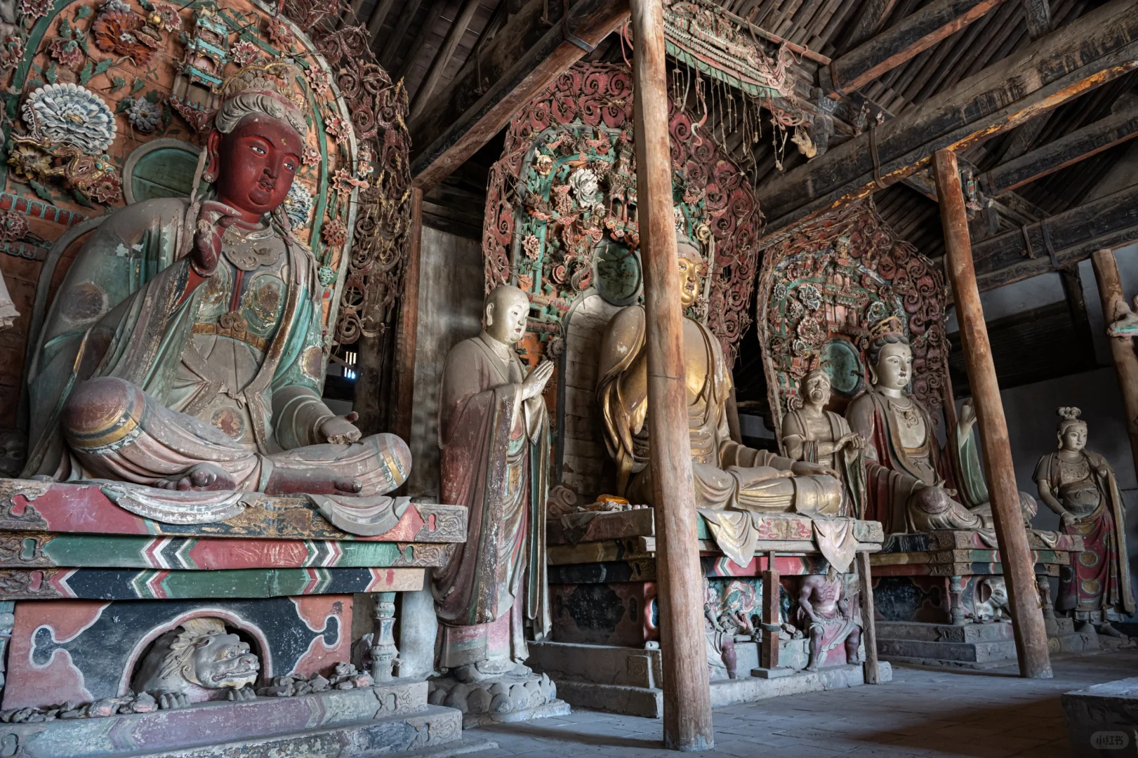 洪福寺是五台山台外的寺庙,建於七米高的土台上,四周置高堡,格局全国罕见。洪福寺大殿内宋金时期的彩塑是该寺的亮点之一,也是五台山地区寺庙彩塑的瑰宝。正殿佛坛上现存九尊宋金时期彩塑,动态十足,极富现实感,为国内佳品。