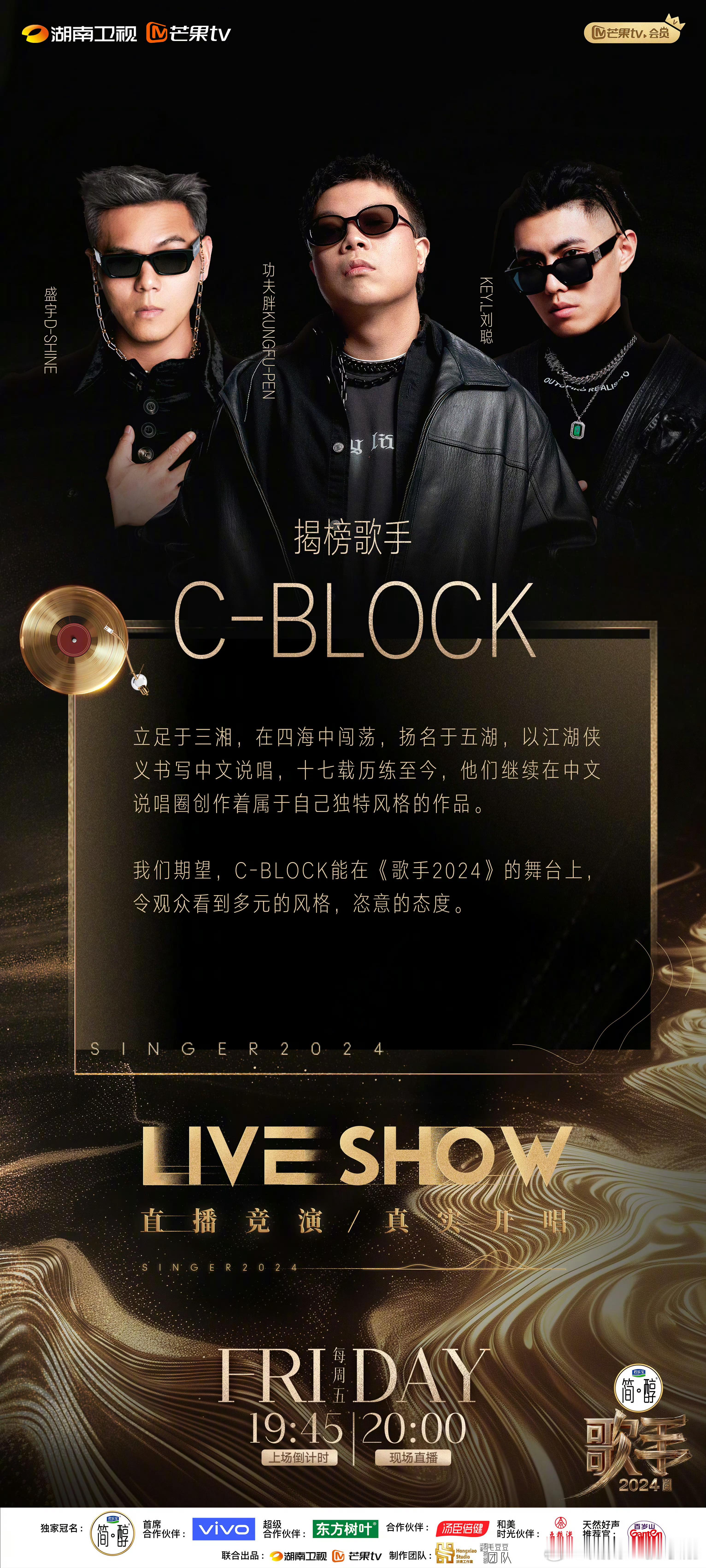 #歌手双揭榜歌手官宣# 三位rapper组团C-BLOCK(盛宇、刘聪、功夫胖),刚刚出炉拿了金曲奖的许钧也将作为揭榜歌手加入。