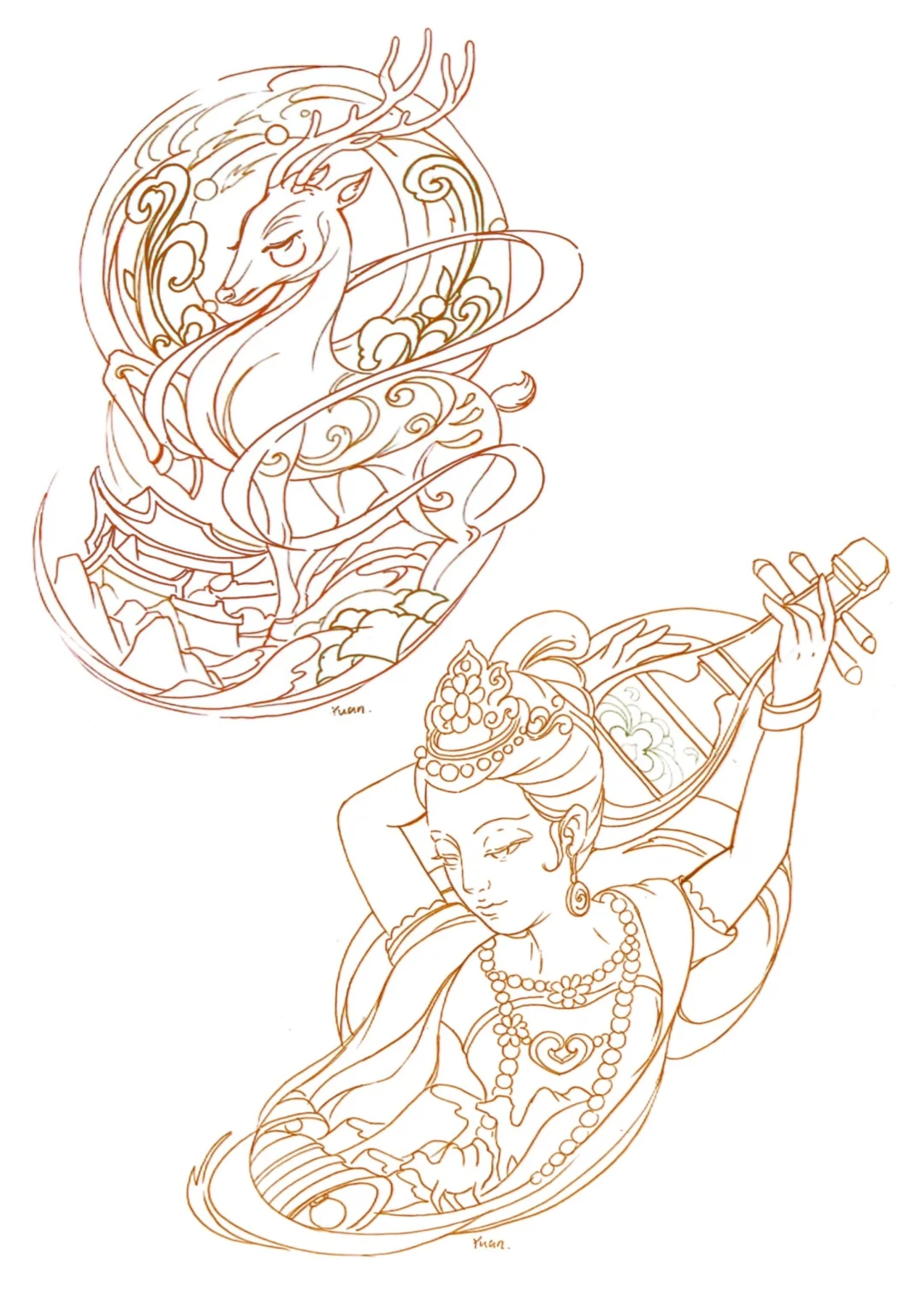 视觉传达设计手绘 考研手绘 考研手绘素材 马克笔手绘 一梦入敦煌 敦煌插画 2025苏航艺号手绘打卡