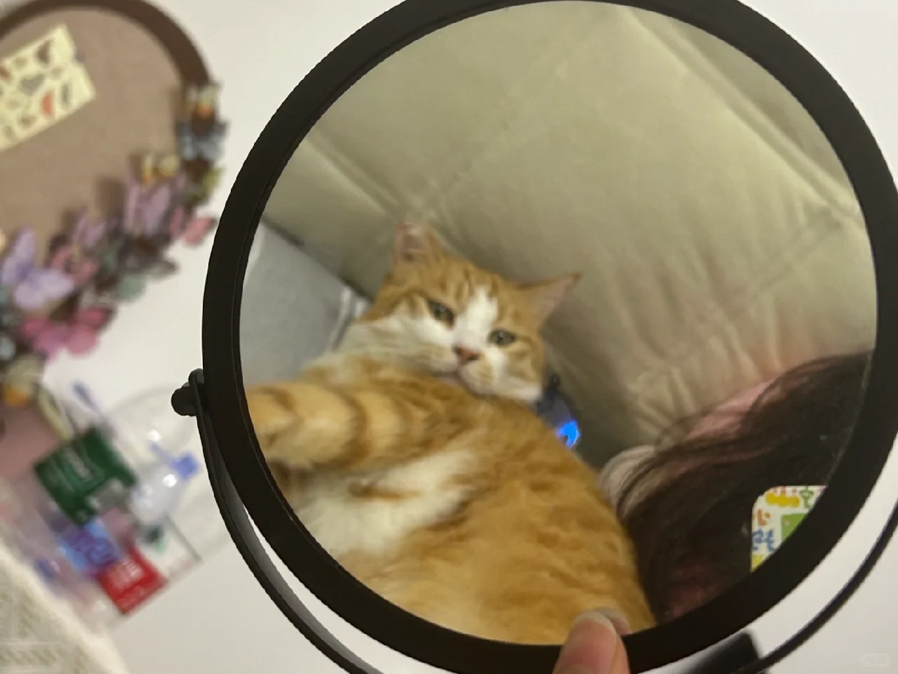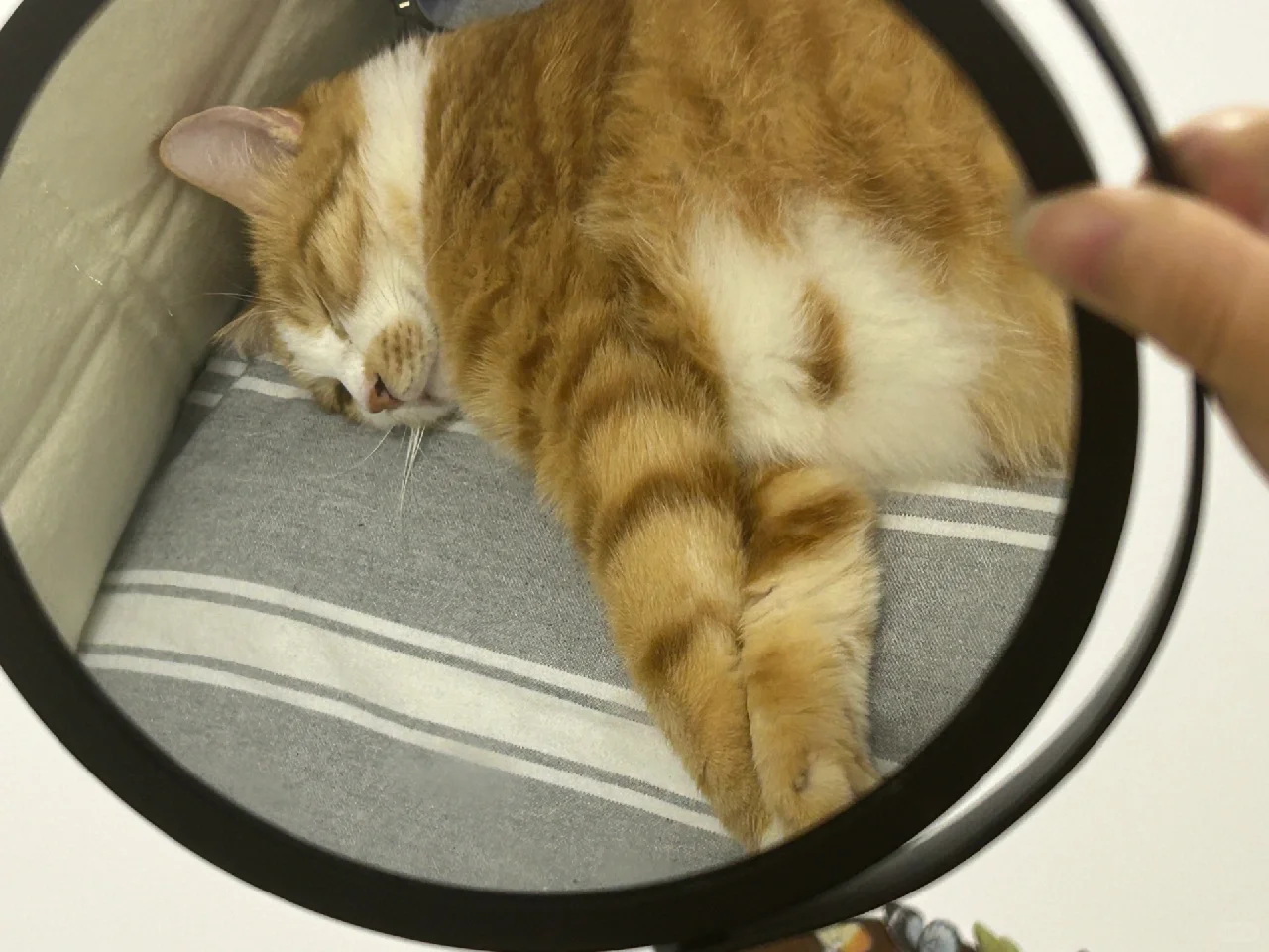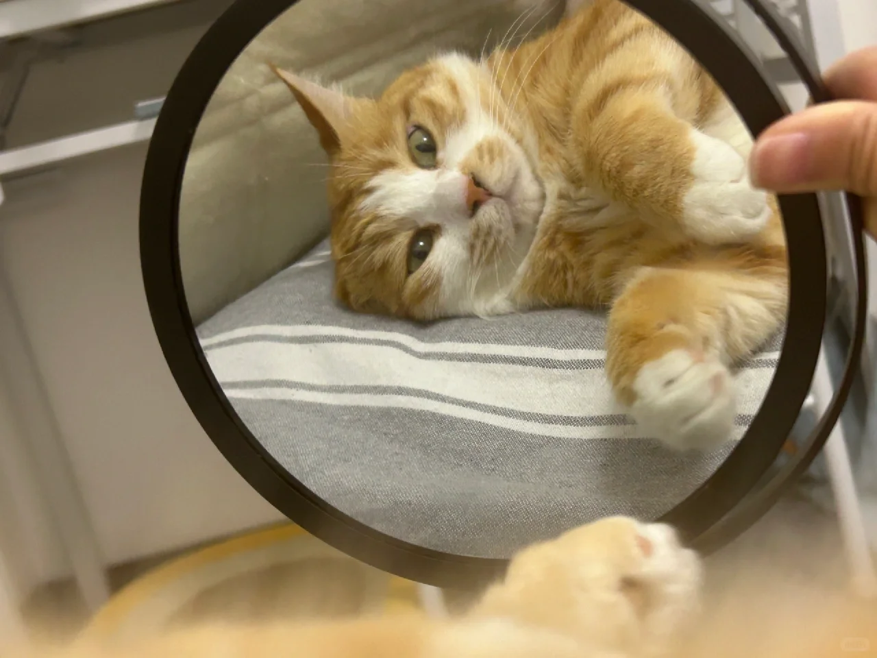 最可爱的小猫! 关于镜子为什么出现在床上[偷笑R]因为流奋老是背对着我躺着,当我想看他的时候,伸出镜子照一下他可爱的小脸就能看到啦[自拍R]