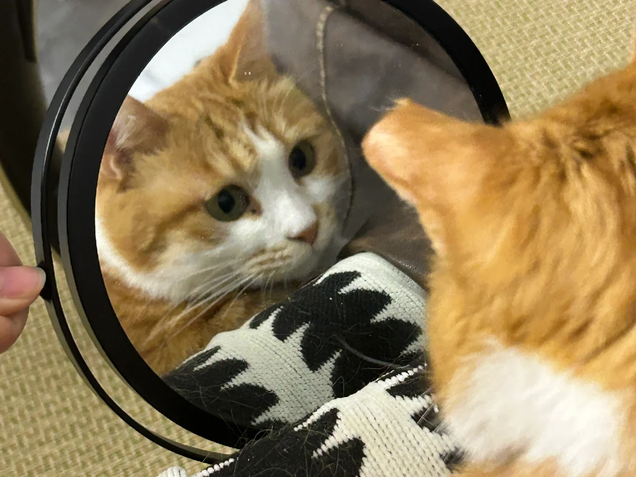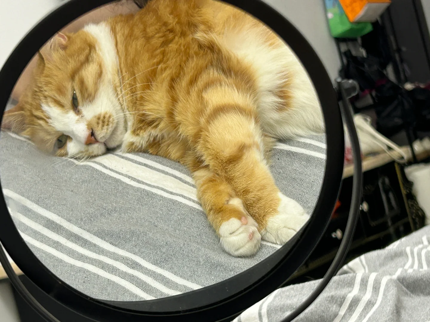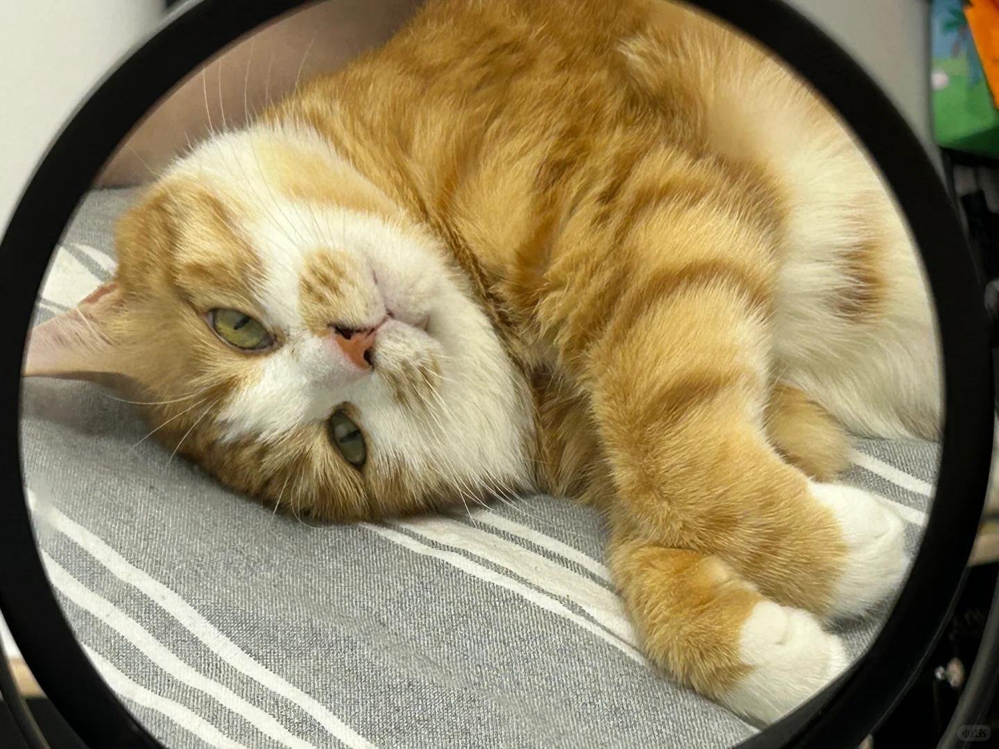 最可爱的小猫! 关于镜子为什么出现在床上[偷笑R]因为流奋老是背对着我躺着,当我想看他的时候,伸出镜子照一下他可爱的小脸就能看到啦[自拍R]