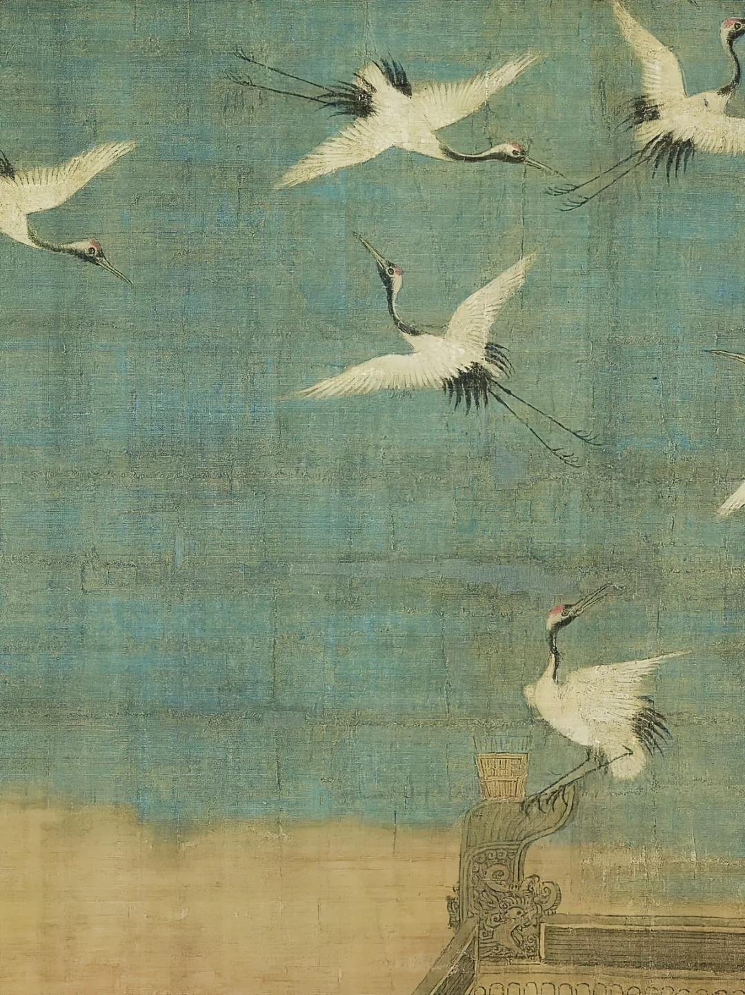 🍀徽宗亲睹此情此景兴奋不已,认为是祥云伴着仙禽前来帝都告瑞,乃国运兴盛之预兆。回宫后立刻叫人拿来上好的细绢和精致的笔墨颜料,以精微灵动的技艺,亲自把这一奇丽的景观用半写生的方式画了出来。