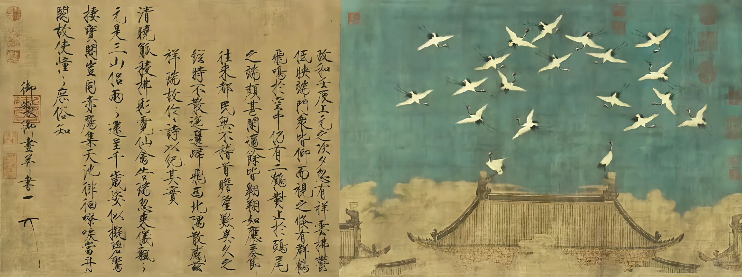 🍀这天晚上,宋徽宗亲自登上宣德门城楼与民同乐,直到很晚才高兴地回宫。第二天一大早,突然有官员向他来报告,说宣德门上空出现了一幕罕见的吉祥景象。汴京宫城的端门上空突然飞来了一群仙鹤,在城楼上盘旋飞舞,争鸣和应。整个皇城内外,官员、百姓都争相观望,并纷纷赞叹这是“太平盛事,吉祥之兆。