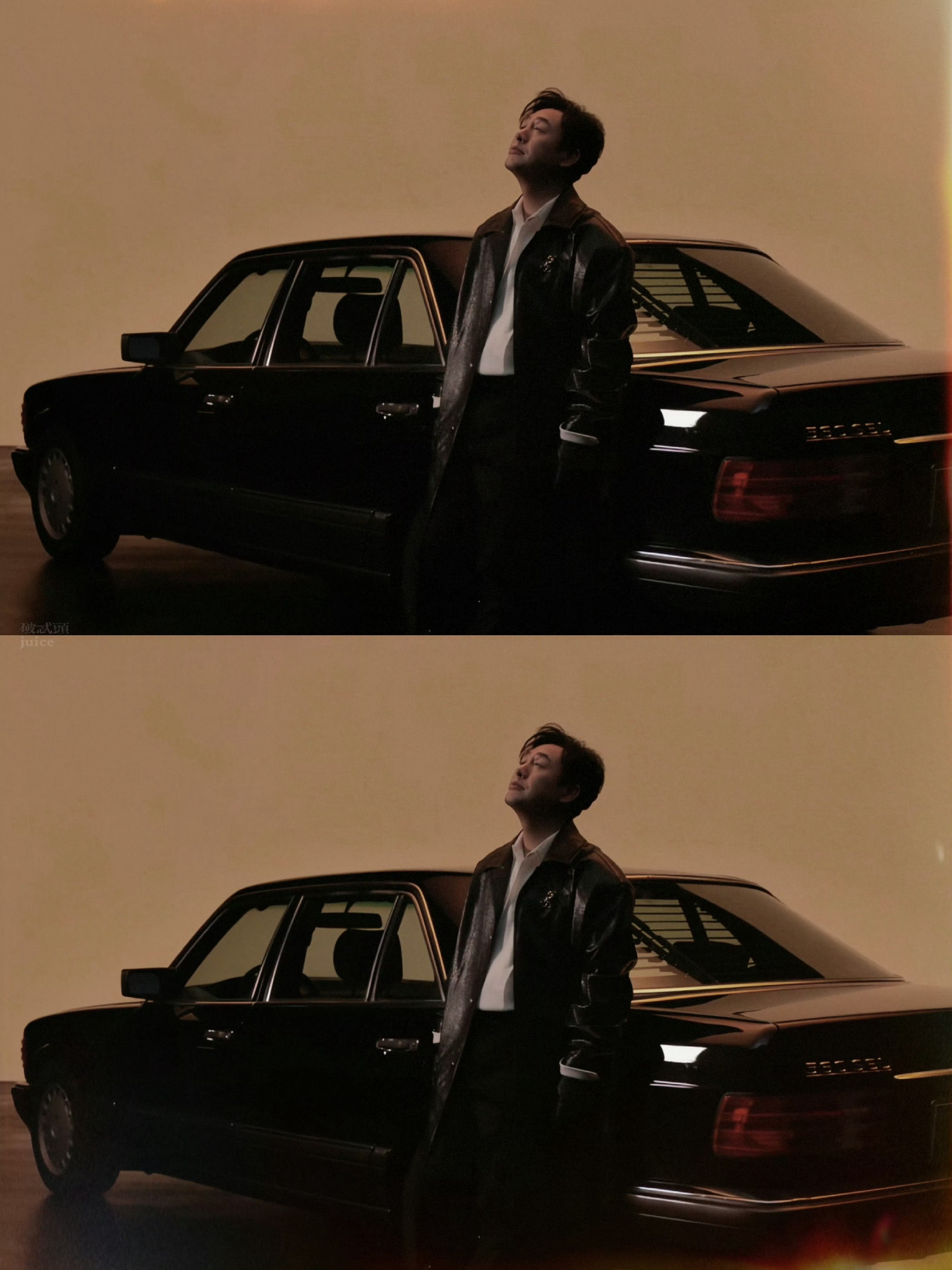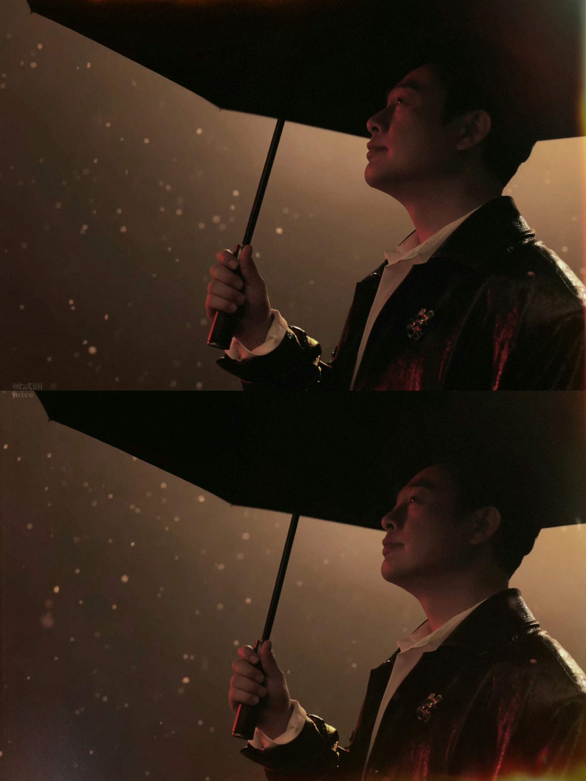 #皮衣能不能焊在张颂文身上# 张颂文黑色皮衣墨镜造型好拉风啊,单手撑伞氛围感拉满了呀,小熊老师和皮衣的匹配度好高呀