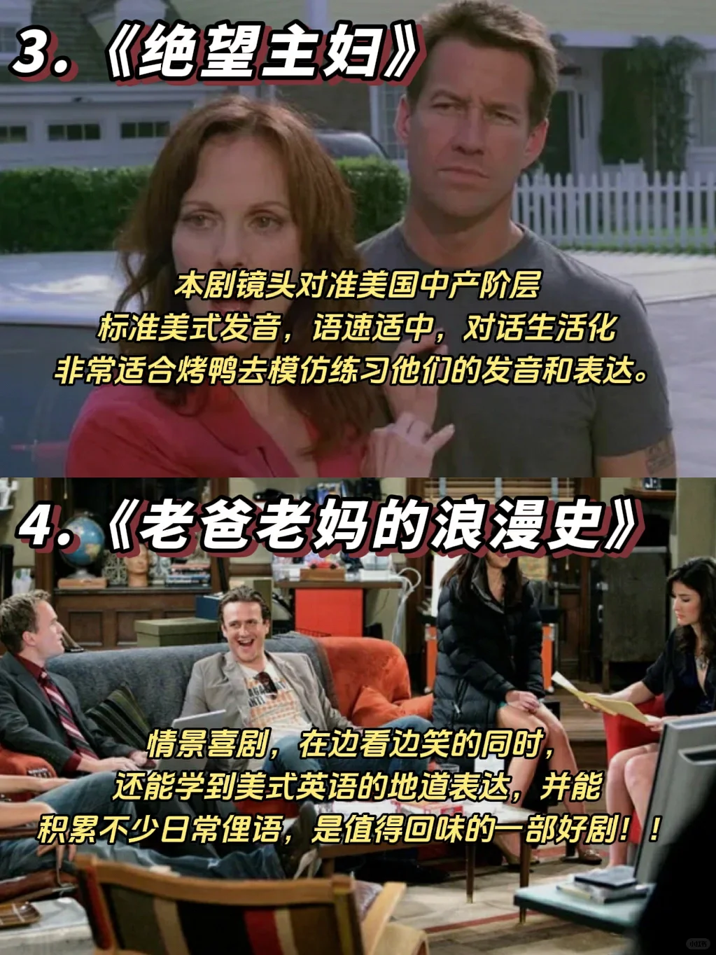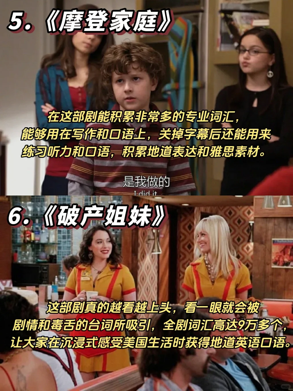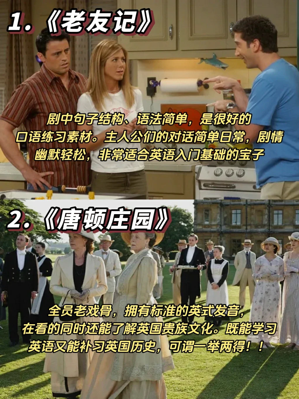 😏同学以为我在追剧,其实我在狂学雅思~ 这6️⃣部高分美剧越看越上头,大部分都是生活化场景🏡语速适中,发音地道,非常适合练习口语和听力!! . 推荐指数:⭐⭐⭐⭐⭐ 1️⃣《老友记》评分9.7 2️⃣《唐顿庄园》评分9.4 3️⃣《绝望主妇》评分8.9 4️⃣《老爸老妈的浪漫史》评分9.1 5️⃣《摩登家庭》评分9.5 6️⃣《破产姐妹》评分9.1 . 哪部美剧是你心中的top1呢?欢迎大家在评论区补充~ .
