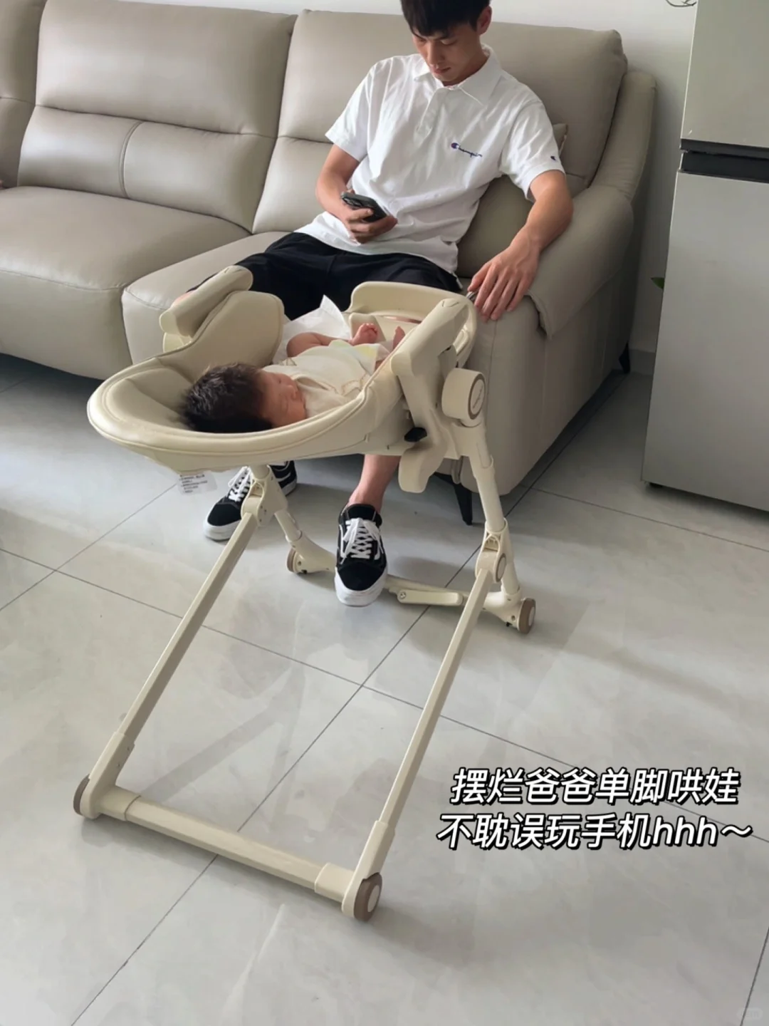 三年生俩!一拖二的神器就是它! 妹妹从月子里就开始用餐椅了! 躺上去走哪推哪 晒太阳 喂奶 换尿布 都在这餐椅上 这不妥妥的移动婴儿床嘛 大人想干嘛干嘛 宝宝随时都能在视线内 不用一直抱着 躺在那用脚推两下就哄睡了 还不耽误玩手机hhh~真的解放双手 座椅高度、靠背都可以调节 小宝推行哄睡 大宝坐着吃饭 一椅多用 从出生能用到好几岁 简直太值啦! 还没生的姐妹都去买 早买早享受!