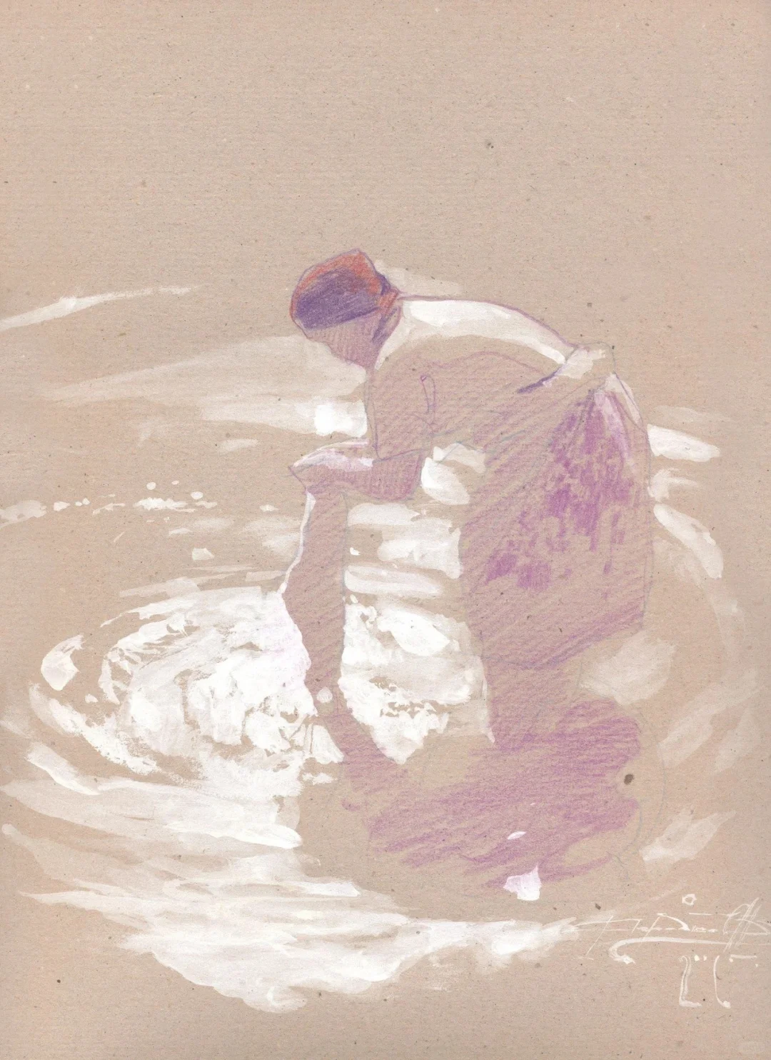日之极媚处是记忆的反光,好似百年前的那个午后,包裹在朦胧的光雾中,穿梭到了今日。观赏的眸也被亮色浸润,看见粼粼水波中逝去的年华。这组画太像曝光过度的老相片,好像亲身经历,又迷离其外,有种与时空对望的故事感。