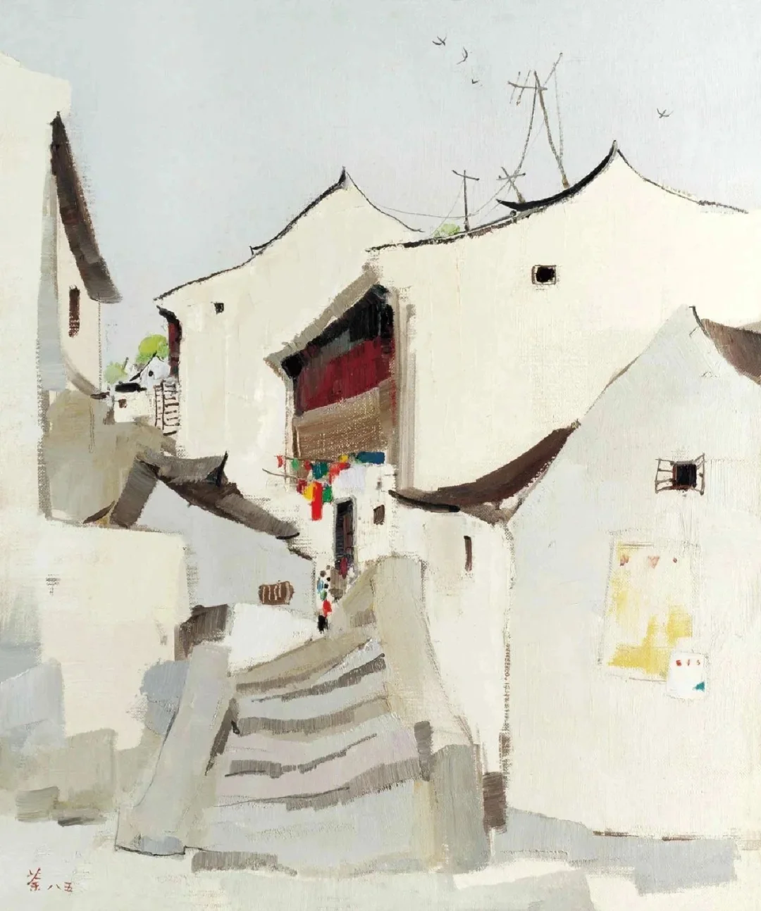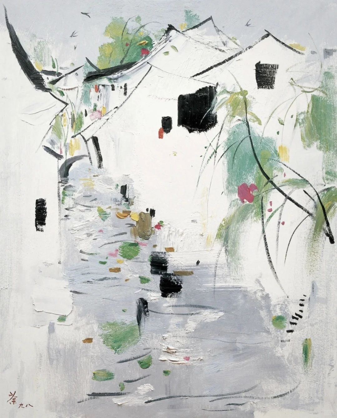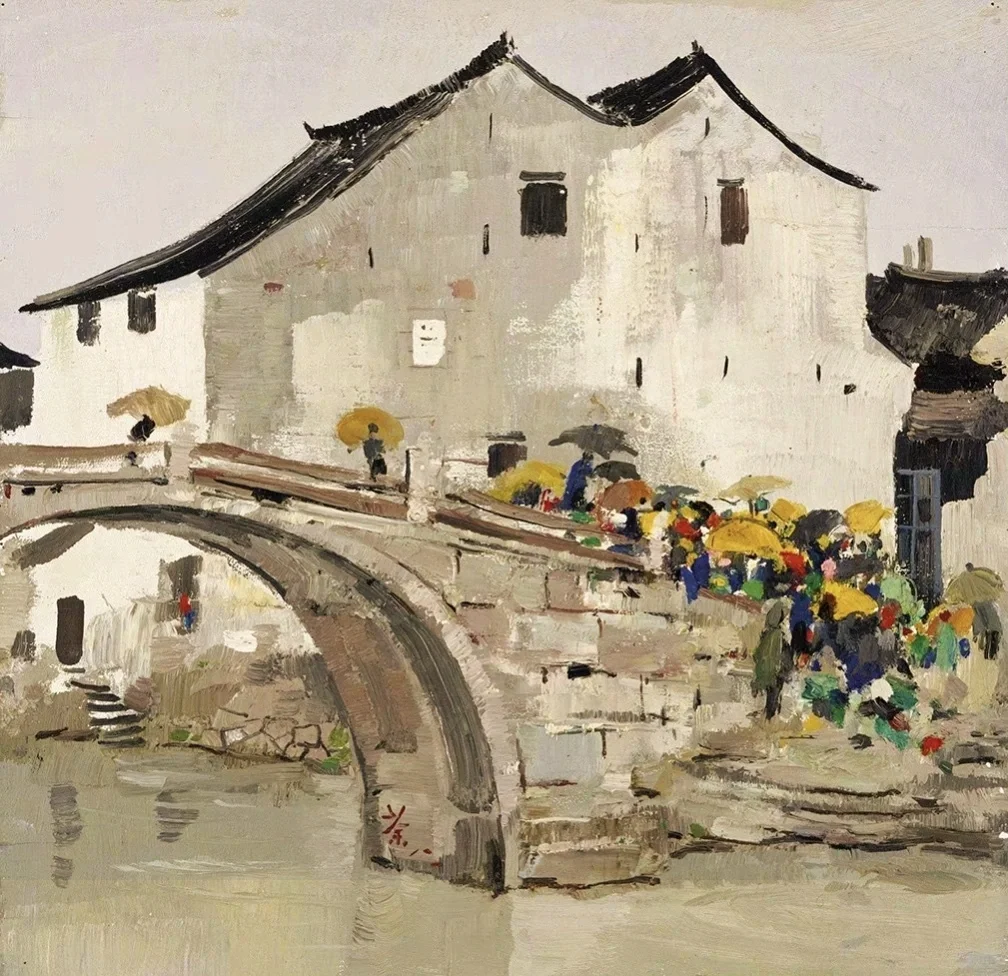 🍀吴冠中在传统的写意山水画中加入了西方油画形式和技巧,创造了崭新的绘画方式,尤其是他的江南水乡系列作品,为中国近现代画坛带来一股新风,促进了中国绘画的繁荣。