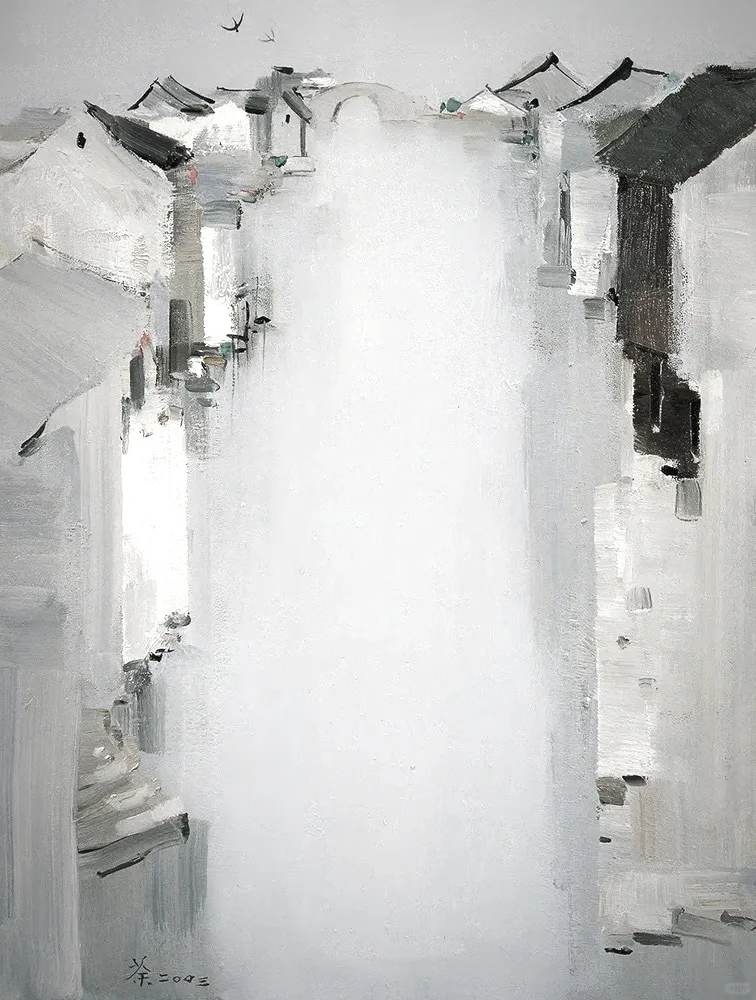 🍀吴冠中擅长表现江南水乡景色,如初春的新绿、薄薄的雾霭、水边村舍、黑瓦白墙……清新雅致,隽永流畅。他运用了线条的流动感,在大篇幅的白色中,仅以若明若暗的黑色线条勾勒,即将江南独特的景象展现得淋漓尽致。
