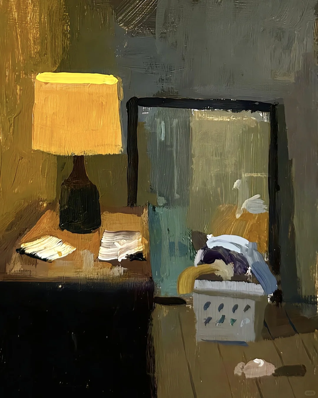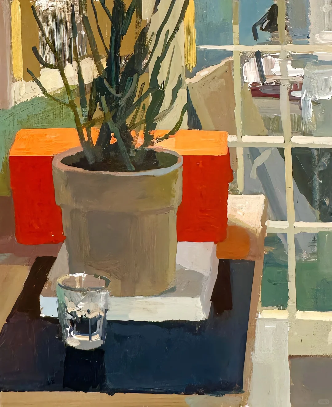 🍀美国画家Jeremy Miranda的创作,植根于日常生活,准确点来说,画的就是工作室本身。尽管沉迷室内风景,户外的景色却在Miranda的画面上占有相当的比重。他用鲜亮的颜色、厚涂的笔触,把玻璃窗外的绿植、阳光引进屋内——冷暖对比色被压缩在一个平面,远和近的距离感消失了。光影在墙壁、地板上划下界线,形成富有设计感的构图,画面散发出冷爵士一样的节奏情绪。 🎨分享世界名画,每天进步多一点~ 🎨我是Anna,与您一起打卡世界名画,提升审美。