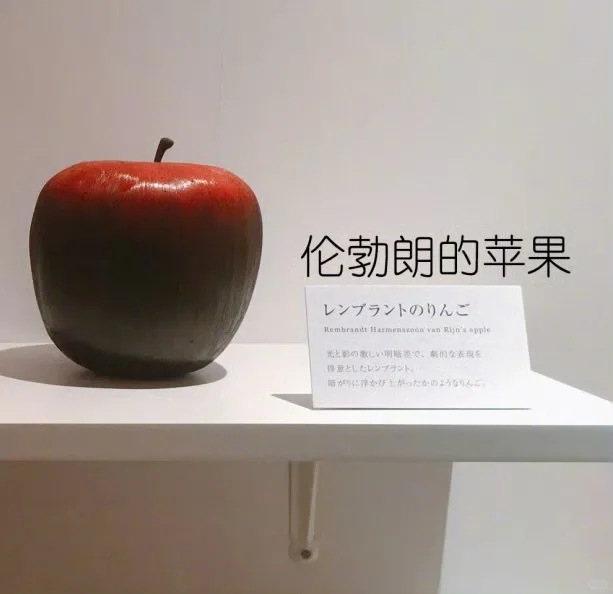 伦勃朗的苹果仿佛在光影之下,像是白雪公主吃的毒苹果。伦勃朗是欧洲17世纪最伟大的画家之一,也是荷兰历史上最伟大的画家。他作品采取强烈的明暗对比画法,用光线塑造形体,画面层次丰富,富有戏剧性。