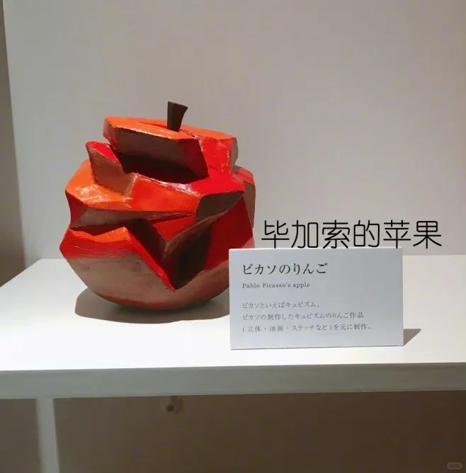 毕加索的苹果带一点立体主义风格,毕加索现代艺术的创始人立体画派的鼻祖,立体主义主张不要去描绘客观物体的外表形态,而是把客观物体引入绘画,从而将表现具象的物体本身和表现抽象的结构形态综合起来。