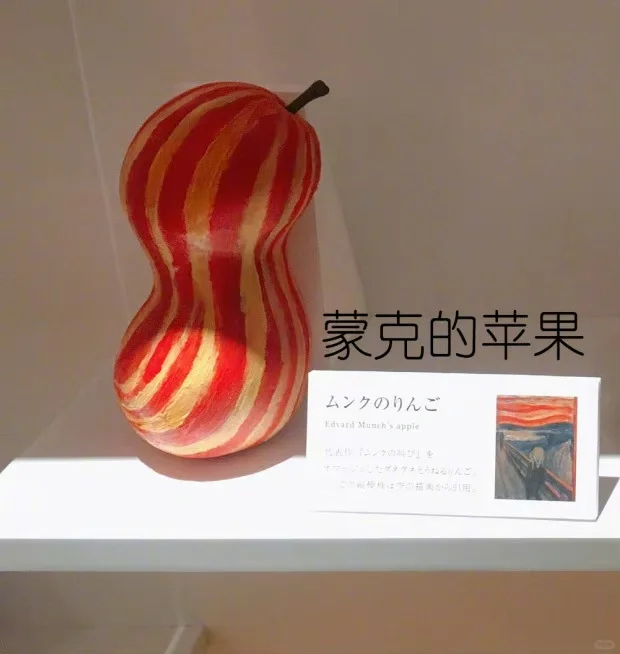 蒙克的苹果有着扭曲的造型和强烈的线条感,现代表现主义绘画的先驱,作品带有强烈的主观性和悲伤压抑的情调。表现主义是艺术家着重表现内心的情感,而忽视对描写对象形式的摹写,因此往往表现为对现实的扭曲和抽象化。