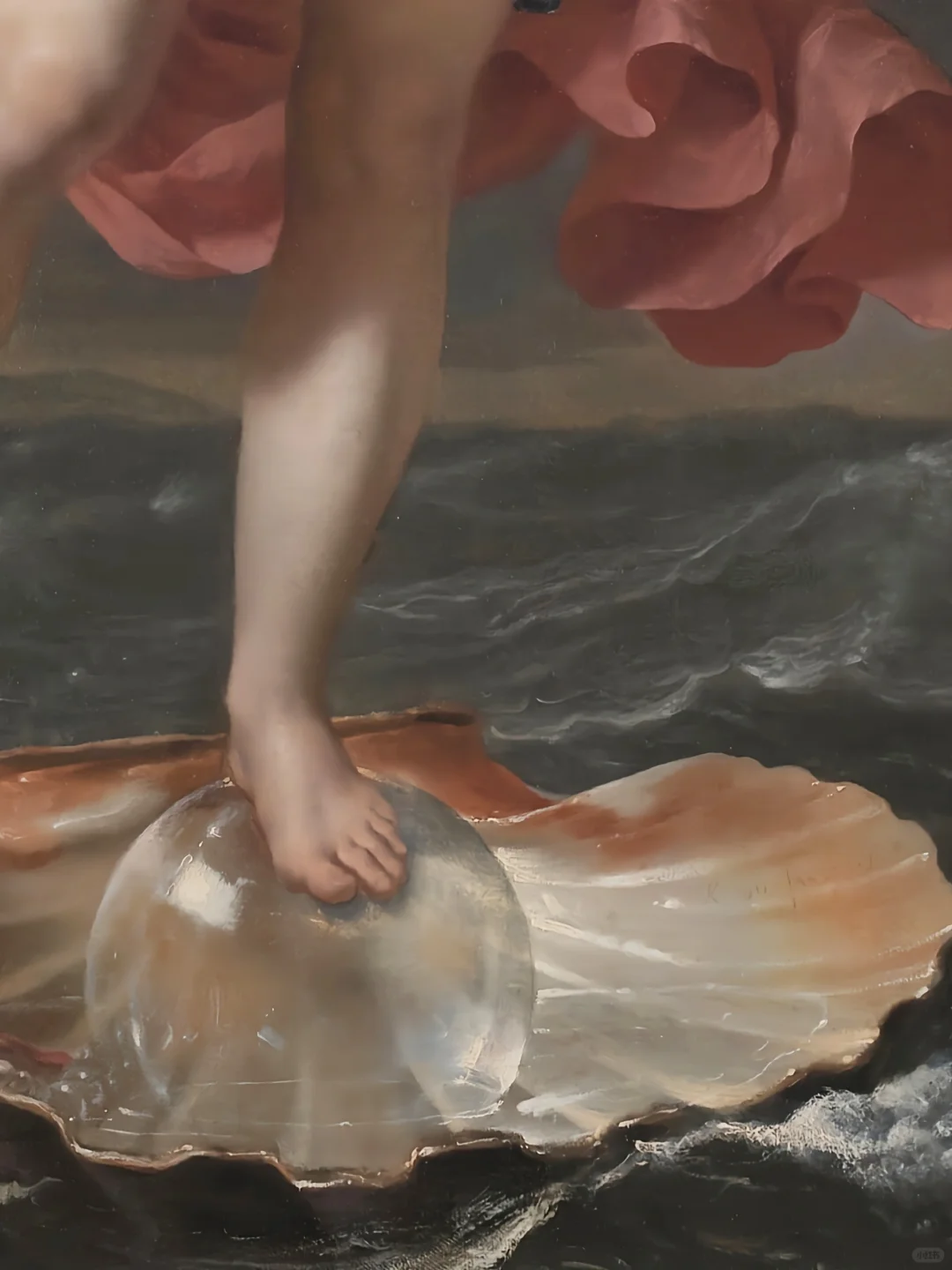 🍀这幅画是对生命和幸福的短暂深刻的寓言。即使是现代的旁观者也能立即理解其中的含义。男孩放下管子,满意地看着自己吹出的泡泡。一只手拿着肥皂盘,一个贝壳里还有一些颤抖的泡泡。男孩站在一个很大的泡泡上,保持着平衡。巨大的贝壳让他漂浮着。这艘船(容器)在原本是真实的描绘中构成了一个超现实的元素,宣布了该主题是寓言。主题是“死亡的纪念”,提醒人们幸福的短暂和人类生命的短暂。