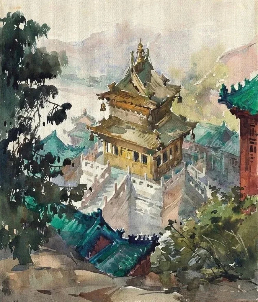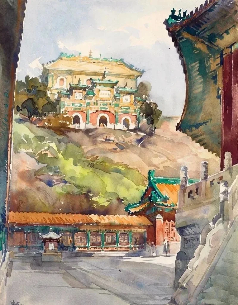 🍀华宜玉(1922.6—2005.7) 女,北京人。擅长水彩画、建筑美术教育,北平艺专油画系毕业,任清华大学建筑学院教授。她是当今中国水彩画坛享有盛誉的水彩画教授、水彩建筑画的专家,也是我国为数不多的著名女水彩画家之一。