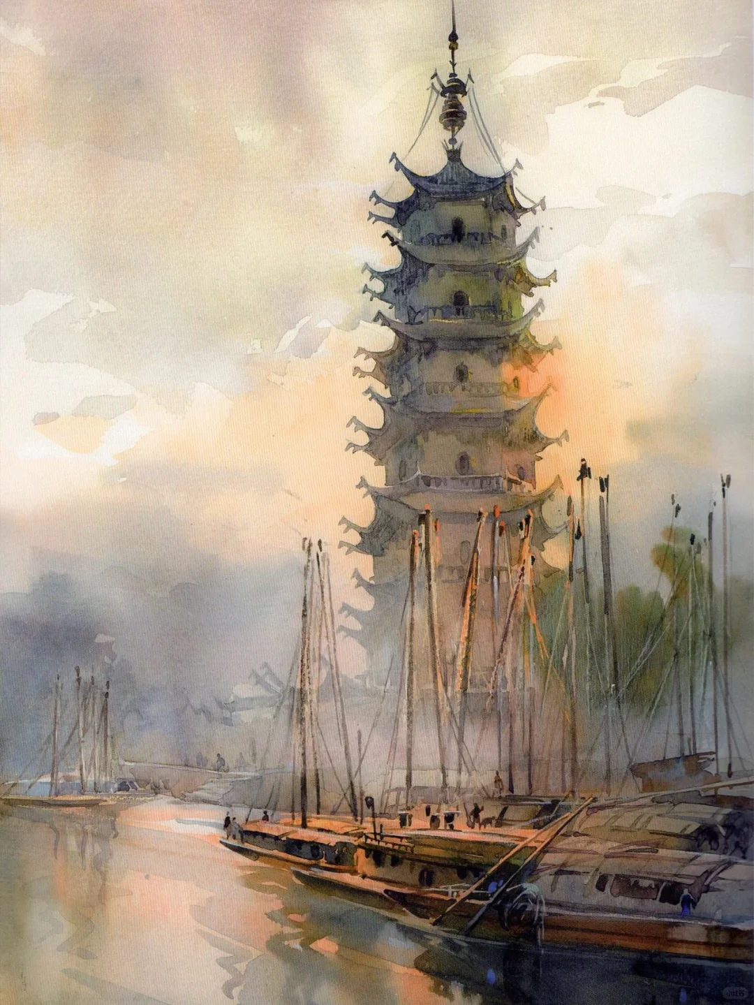 🍀华宜玉作品有水彩画《静物》《晨曦》 等。其中《烤烟房》获全国水彩、粉画展优秀奖;《江南民居》《洞庭春》《居庸关》《排云殿》等为中国美术馆、美国东方艺术中心等收藏。另外出版有《华宜玉建筑水彩画》《华宜玉建筑水彩画选》《建筑水彩画技法》。