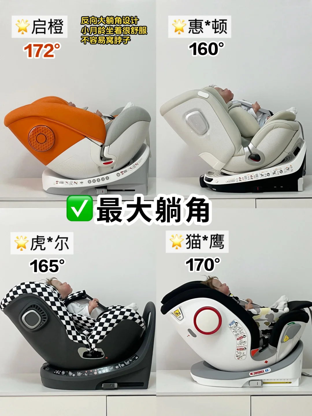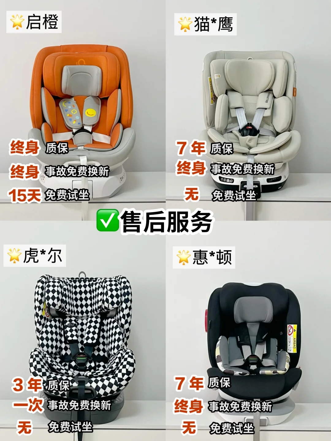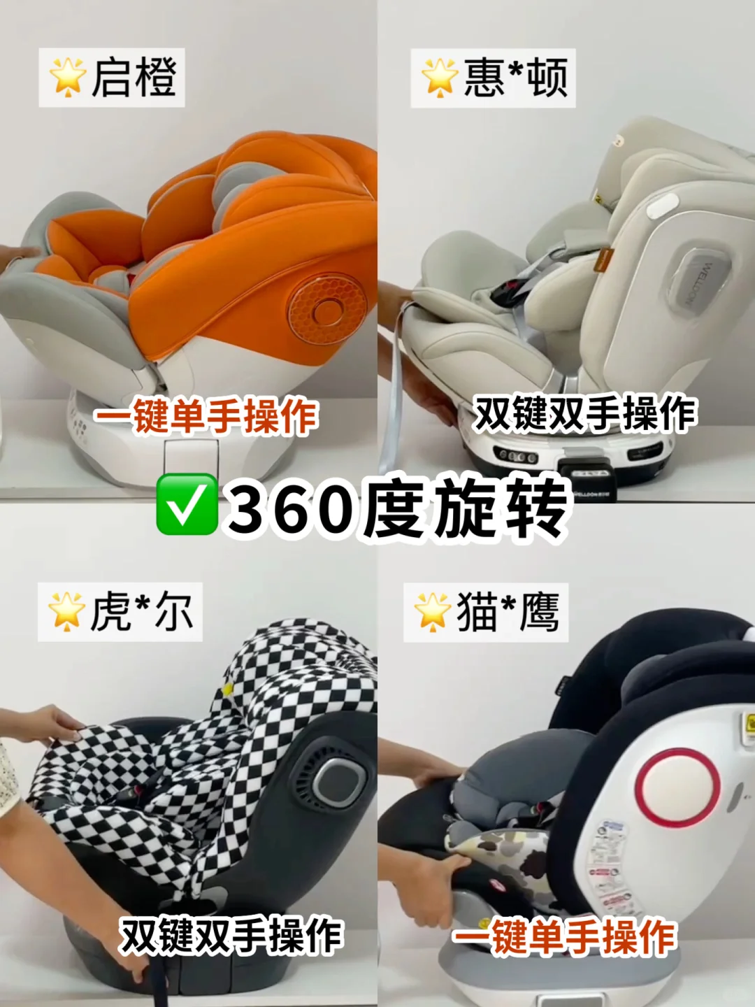 作为一拖二的二胎妈妈 在给宝宝选择安全座椅这件事上,我向来比较严格 很多人问我宝宝安全座椅怎么选? - 作为一个经验丰富的二胎妈妈,今天把我带娃这几年,用过的4款安全座椅,都是我们宝藏国货品牌 从售后/躺角/通风/头枕材质/认证/旋转这6️⃣ 个维度,给大家做个测评,建议收藏🌟 ✔启橙壳壳椅Pro ✔惠尔顿智转2Pro ✔虎贝尔E360 ✔猫头鹰妙转Pro (4款座椅测评过程都放在图片啦,可以滑动查看!) - 浅放一个选购要点👇 1️⃣看售后:新手妈妈给宝宝选购大件,可要问清楚售后服务,像安全座椅,尽量选择有免费试坐、终身质保、终身事故免费换新服务的品牌更省心,那种质保时间太短的,过了质保期限维权是真麻烦,没得保障 - 2️⃣看躺角:给小月龄宝宝选座椅,尽量选择172度左右大躺角的安全座椅,躺得更舒展不窝脖子。否则躺角太小很容易窝脖子,一直歪着很难受,新手妈妈们可得注意了!! - 3️⃣看智能通风:天气越来越热,普通座椅没有配置智能通风功能,别问,问就是热!!怕热的宝宝尽量选择自带智能通风的座椅,夏天乘坐干爽舒适 - 4️⃣看头枕材质:小月龄头部脆弱,所以要更重视头枕的减震效果! 👉头枕常见的材质有新型TPE>新型记忆棉>传统EPP>传统EPS ✔️减震效果由强到弱依次排列,其中新型填充物TPE减震材质相比传统材质,它的缓冲隔音效果会更好,给宝宝头部更好的保护! - 5️⃣看认证:有i-Size认证,如果有40-150cm全阶段i-Sze认证更好,安全系数更高 - 6️⃣看360°旋转:从使用便捷性来看,一键单手旋转>双键双手旋转 - 测评下来个人觉得启橙壳壳椅Pro的表现还不错,最近想买安全座椅的宝妈们们可以来抄下作业咯!📖 千元价位,质感、做工、颜值一整个超出预期,自带智能通风🌬️设计,夏天坐着也不怕闷🍃,宝宝很爱,而且有172度的大躺角跟专属的QCenter头部保护系统,舒适跟安全都一步到位! 售后服务也很贴心,终身质保,终身事故免费换新!还有15天的免费试坐体验,是真的省心又省事 - 总之安全无小事,希望姐妹们都能在618大促选到心仪的安全座椅!为宝宝的安全保驾护航~