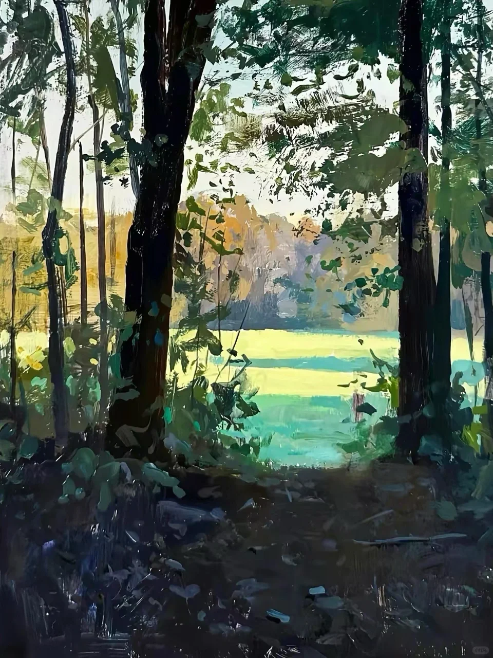 🍀Jeremy Miranda是一位来自罗德岛州米德尔敦的艺术家,他对有关记忆和风景的绘画感兴趣,喜欢创作徘徊在内部和外部世界之间的复杂空间环境的绘画。 🍀Jeremy Miranda的作品大多都基于他不断变化的日常生活,无论是略带伤感的落日还是静谧的夏日夜晚,都在真实的小细节中保留了一些空灵的火花。 🎨分享世界名画,每天进步多一点~ 🎨我是Anna,与您一起打卡世界名画,提升审美。