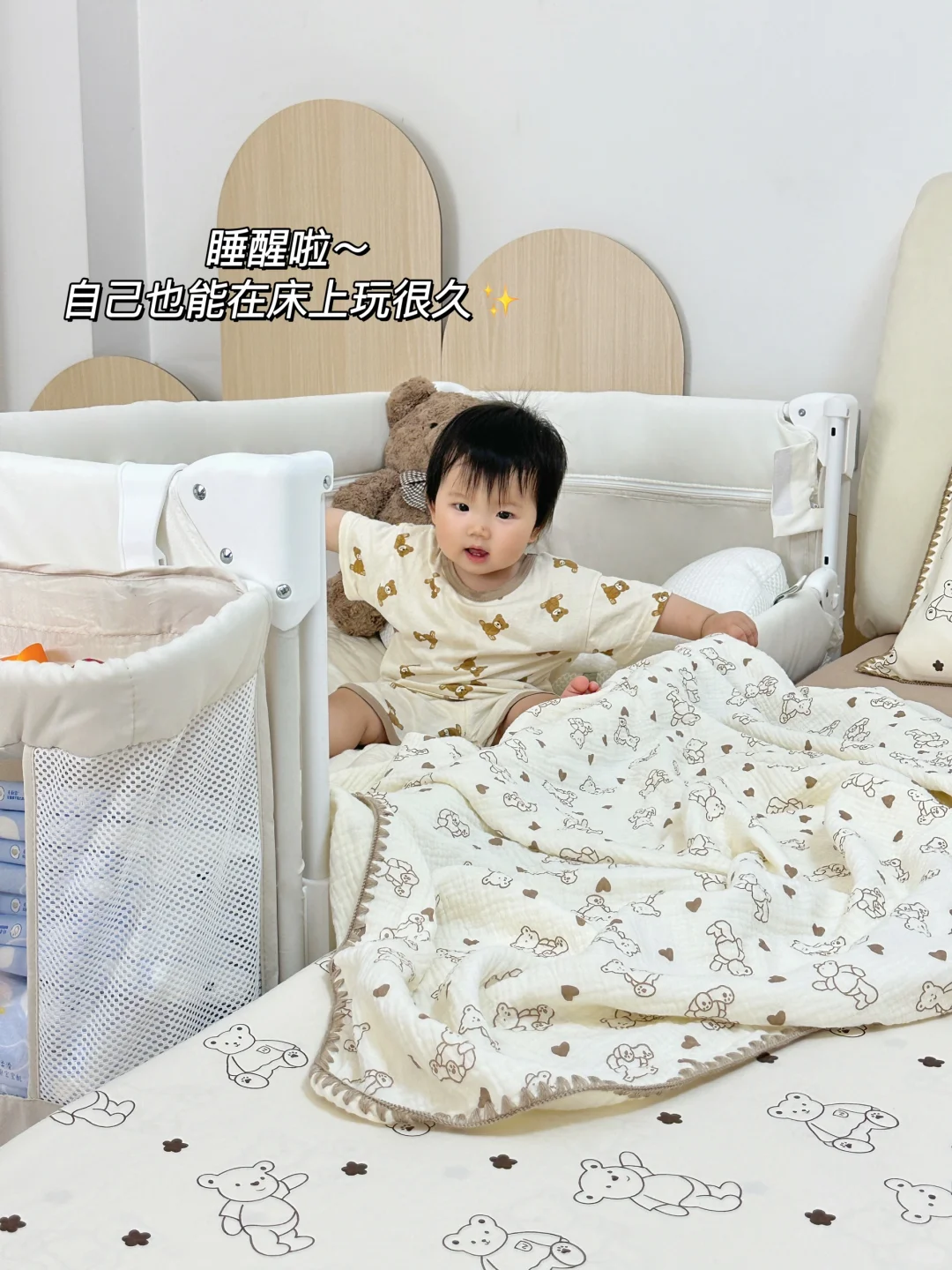 无缝拼接大床,让宝宝睡觉时还可以跟妈妈接触到,睡觉更安心更香!