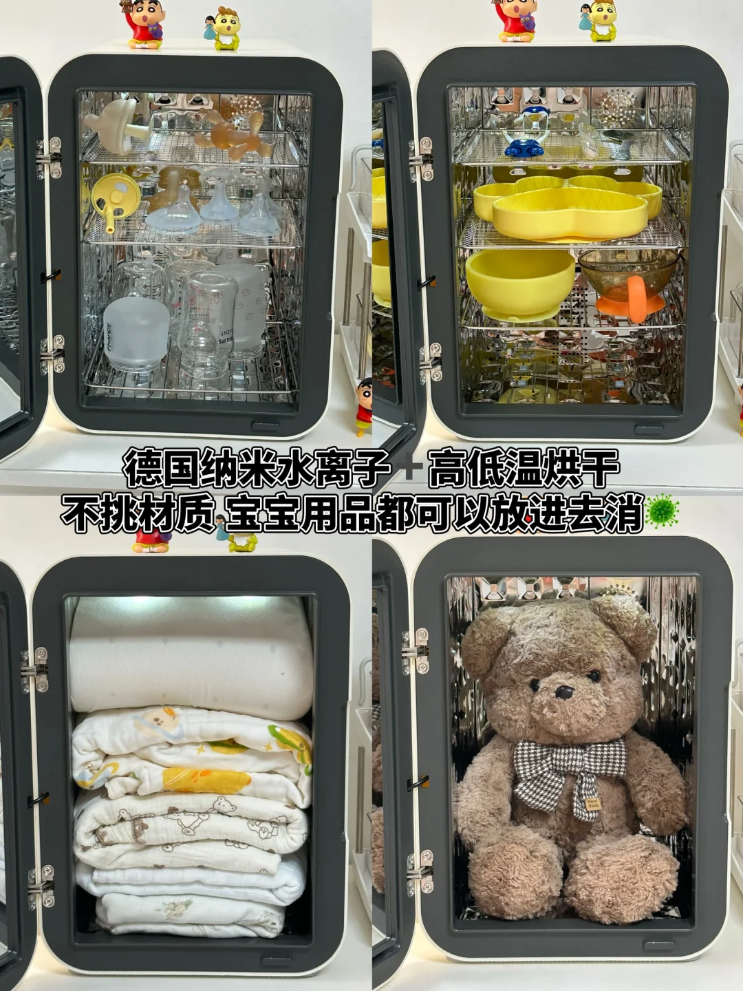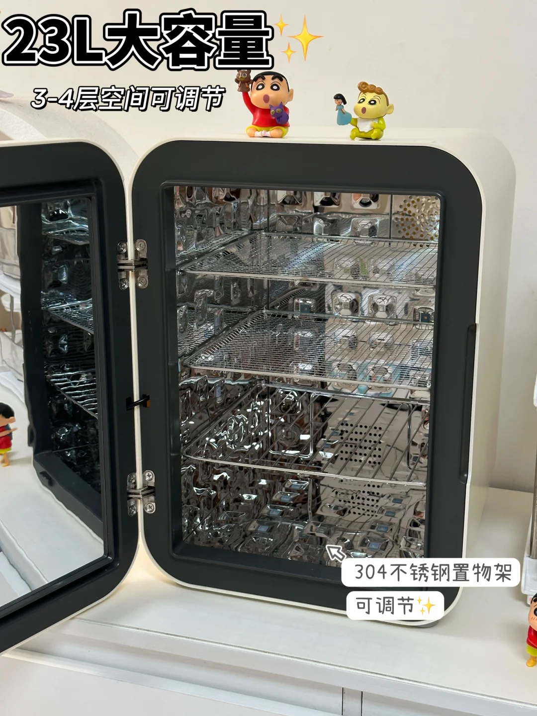 而且不仅能应对3️⃣0️⃣种细菌,杀菌率🦠更是高达到99.99%!还有23L的超大容量4层可调节宝宝的日常用品都能一起塞进去消毒!