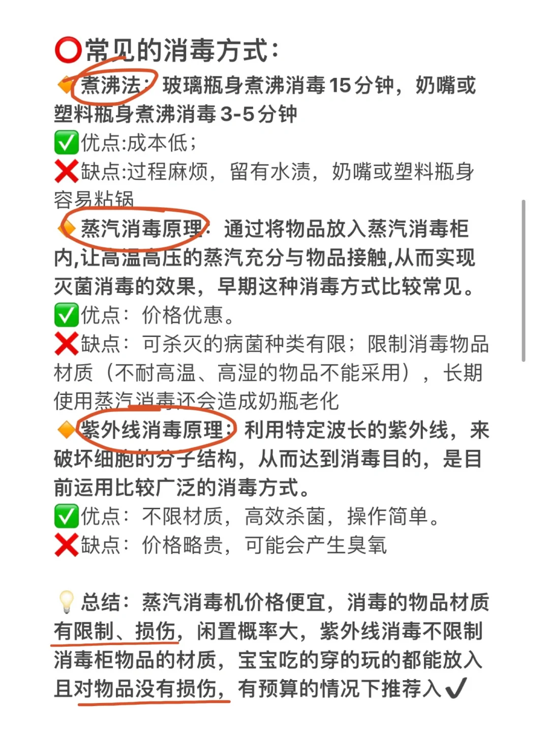 消毒方式也很多,传统的水煮已经被淘汰了,如果在蒸汽跟紫外线消毒中选一个,我更推荐紫外线消毒柜✅