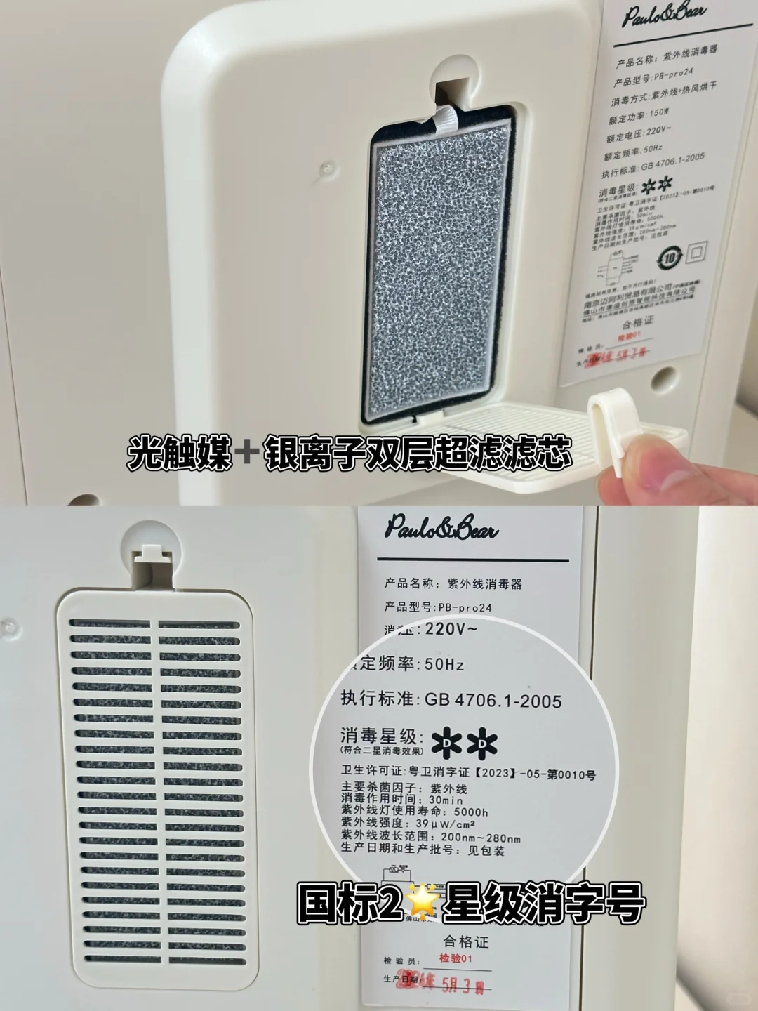 除此之外,它的德国纳米水离子除菌技术也敲厉害,渗透式除菌,真正做到无菌无味!这种技术一般是配备在高端空气净化器上的,我还是第一次看到有品牌把它放到消毒柜上使用,为此,我还特意去查了一下,确实是有0臭氧的广微测鉴定报告盖章备案的!