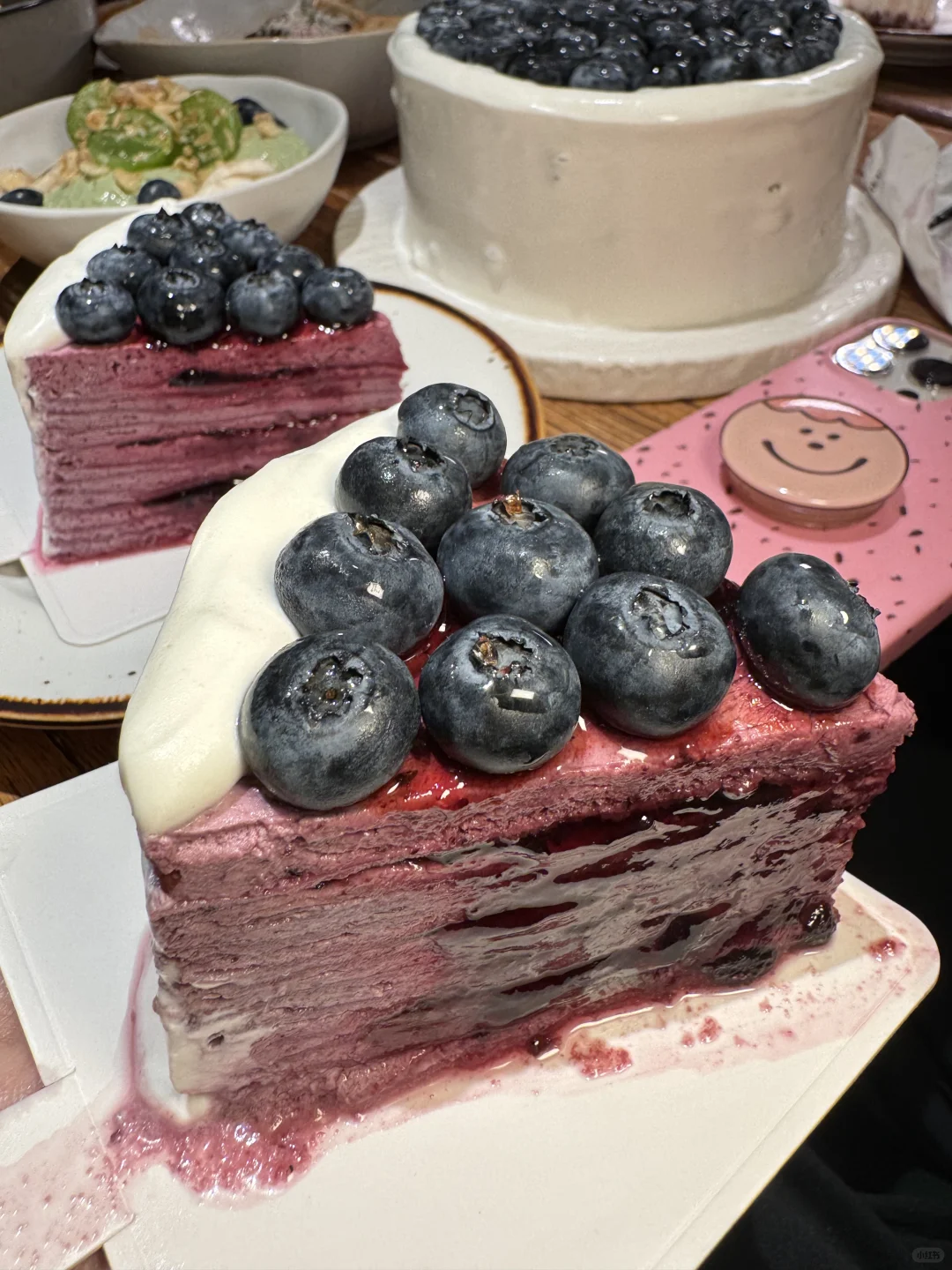 烤芝士蛋糕,口感甜甜咸咸的,非常好吃!!! 还有蓝莓爆浆蛋糕,果肉超多