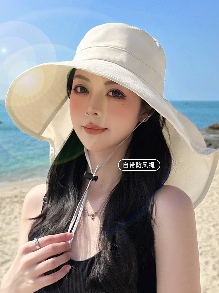 夏季防紫外线户外登山大檐太阳帽披肩男骑行遮阳