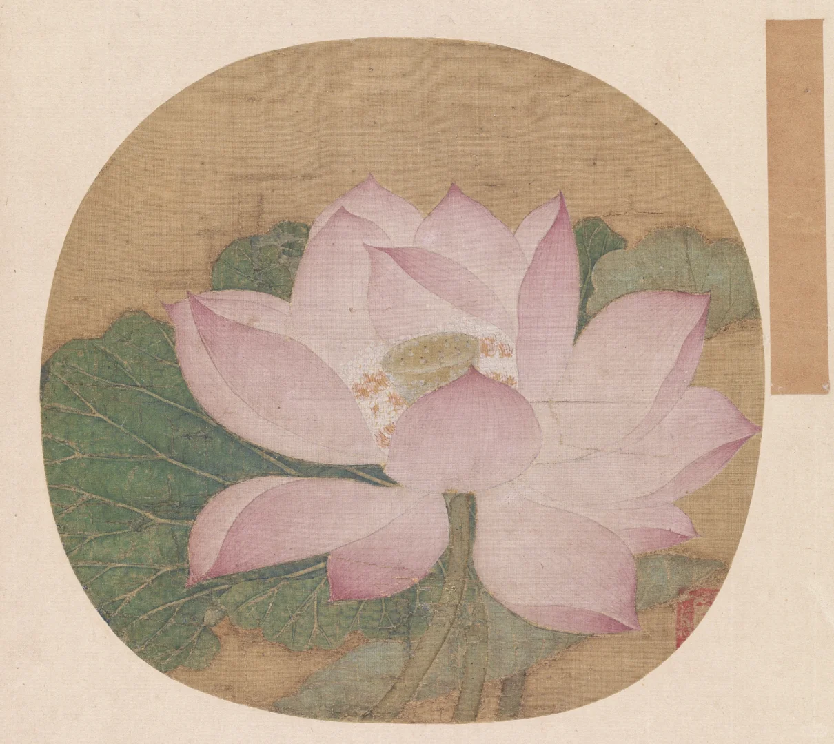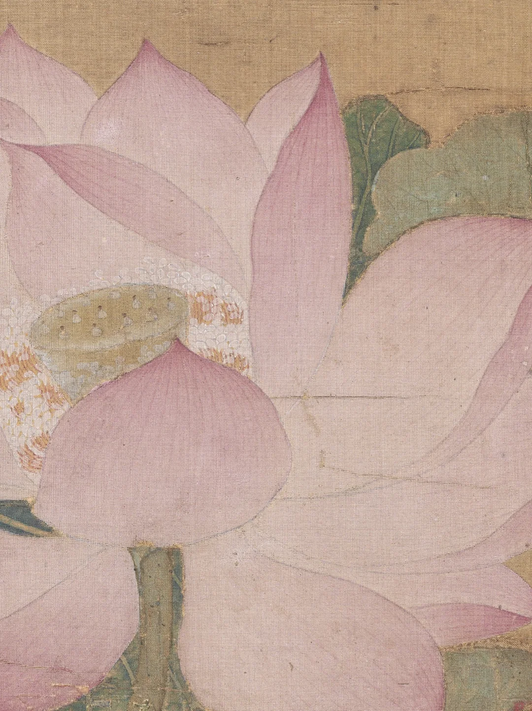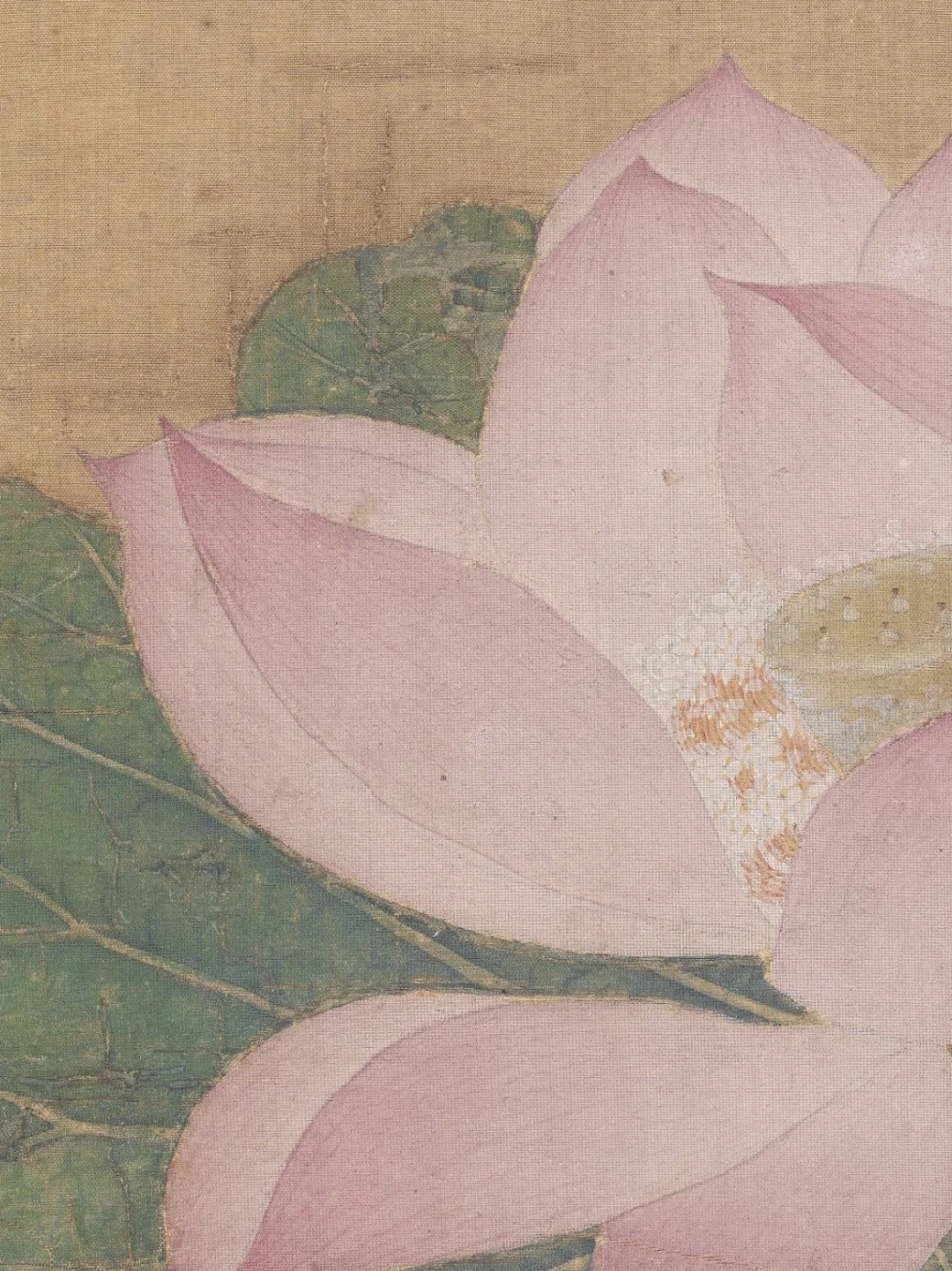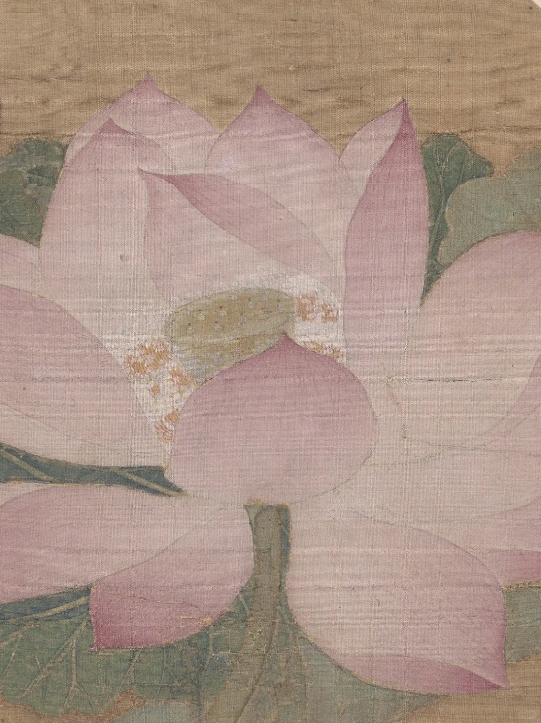 🍀莲瓣的描绘技法类似后世的“没骨”法,不见勾勒之迹,渲染出花瓣既轻盈又腴润的质感。画家的写实功力极为扎实,每片莲瓣的形状、角度、色泽和光感都安排得无懈可击。至于瓣上红丝、蕊端腻粉,也一一仔细料理,微妙之处,使人叹为神工!