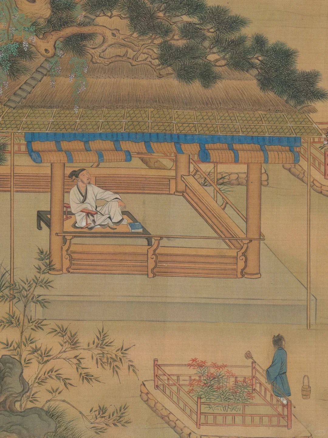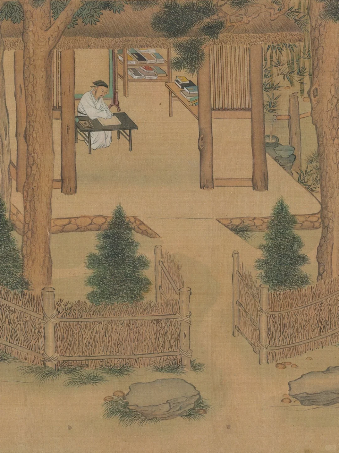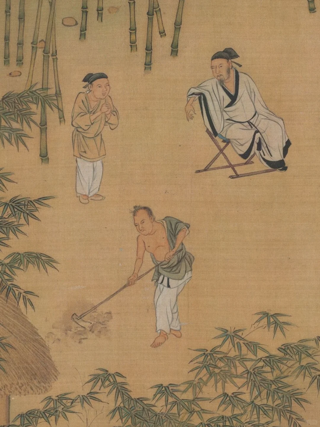 北宋司马光撰有《独乐园记》,描绘他自己在洛阳的宅园。画卷从右至左,以司马光《独乐园记》中的主要园景按顺序描绘。而司马光一人,则在画面中反复出现,体现出他的“独乐”之趣。