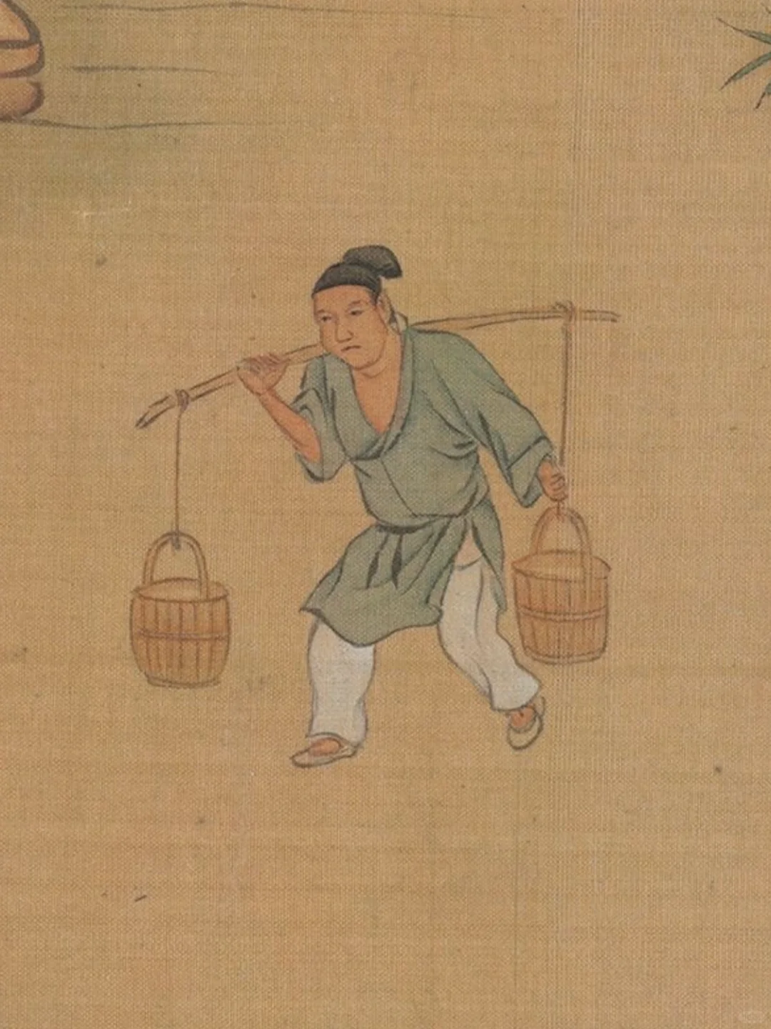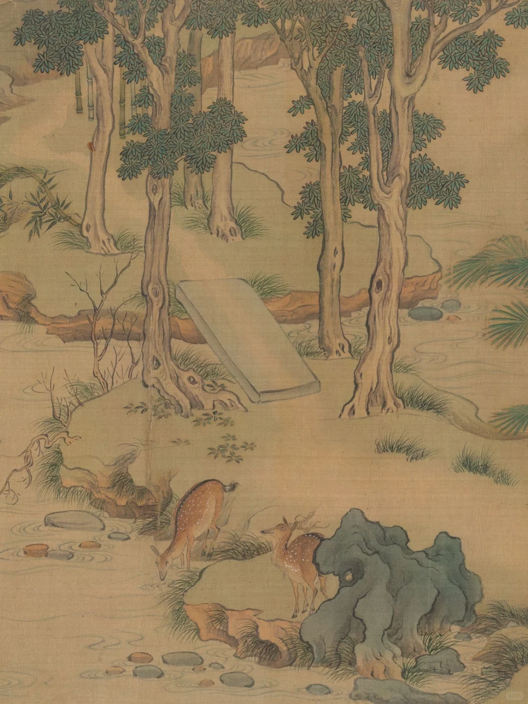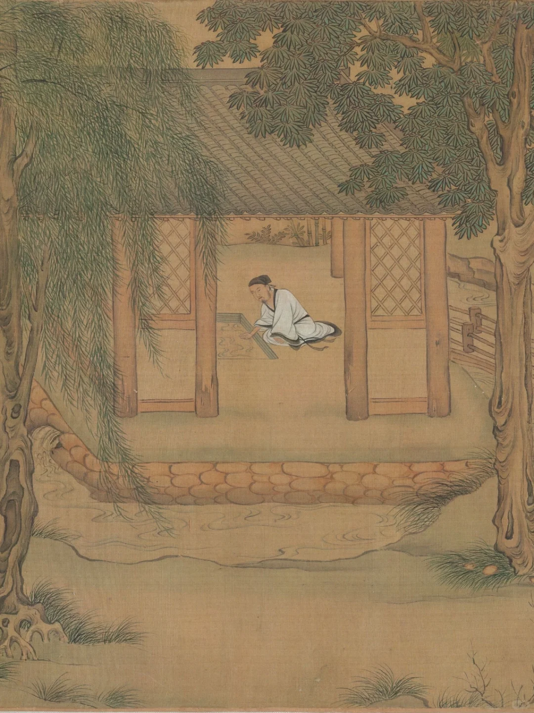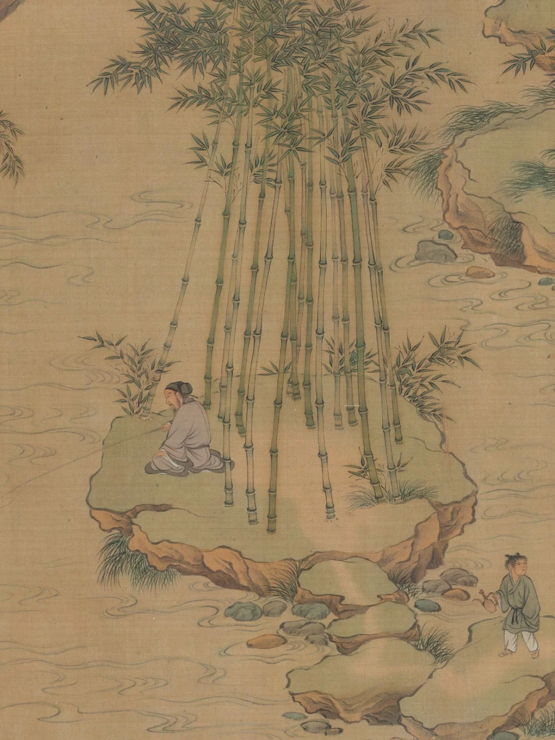 北宋司马光撰有《独乐园记》,描绘他自己在洛阳的宅园。画卷从右至左,以司马光《独乐园记》中的主要园景按顺序描绘。而司马光一人,则在画面中反复出现,体现出他的“独乐”之趣。