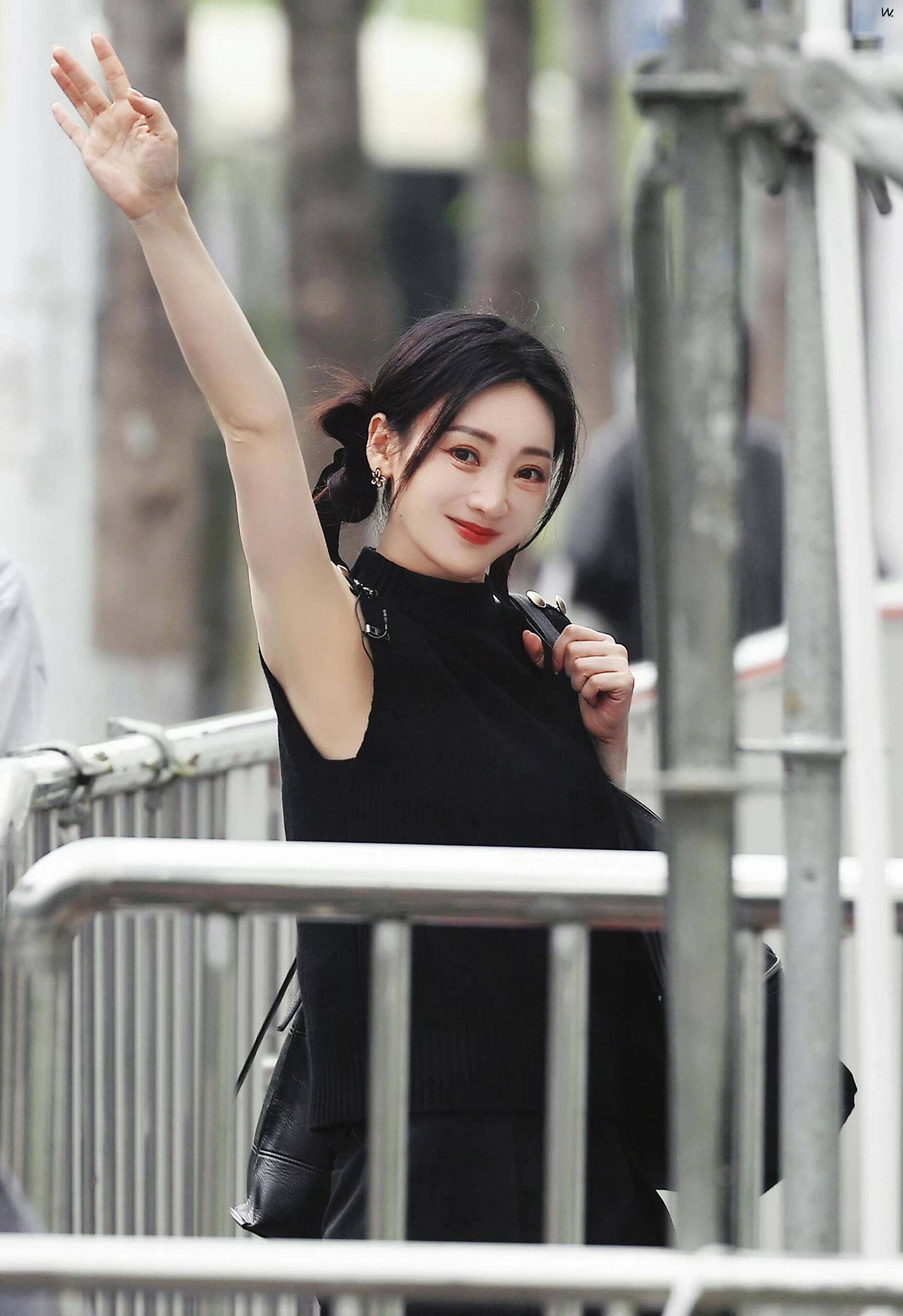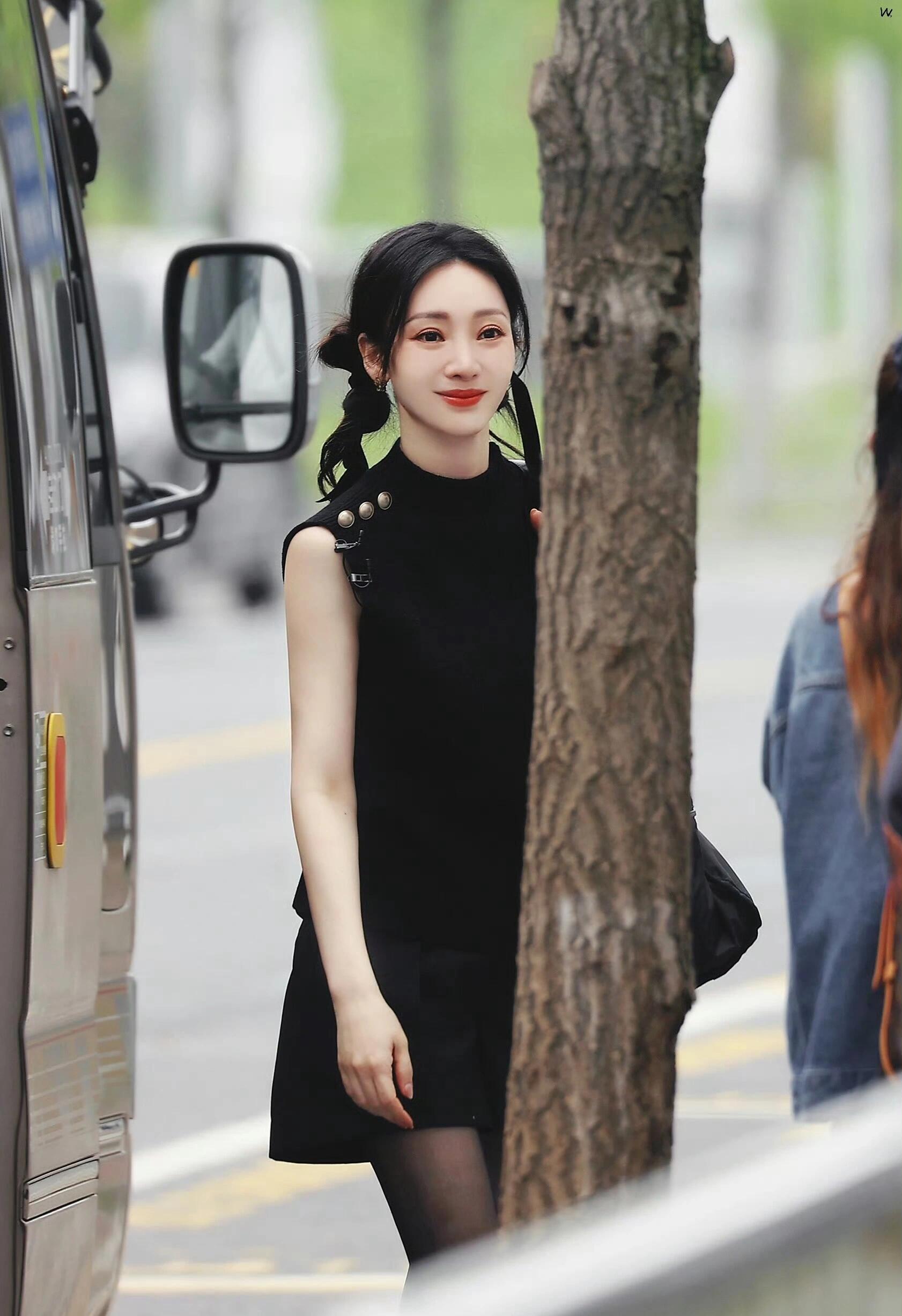 她手捧气球花束,妆容精致,气质非凡。身穿小黑裙的她酷飒性感,笑容明艳大气,令人眼前一亮,展现出了她的自信和魅力。